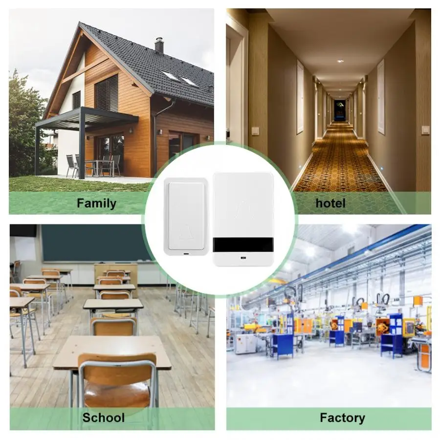 28 дополнительных мелодий мелодии и 4 уровня регулируемого объема. Удобно выбирать их случайным образом. Поддержка напряжения переменного тока 100-240 В, беспроводная частота 433,92 МГц, простая и простая установка. Звон мигает дизайн, может обеспечить много удобства для людей с ограниченными слухом. С сильным сигналом и функцией дальней передачи. До 150 метров беспроводного диапазона в открытой местности, может уменьшить влияние расстояния успешно. Водонепроницаемая и влагостойкая функция, может быть установлена в любом месте и в любое время, не беспокойтесь о плохой погоде. Нажмите, чтобы генерировать электричество, батарея не требуется, энергосберегающая и практичная в использовании.