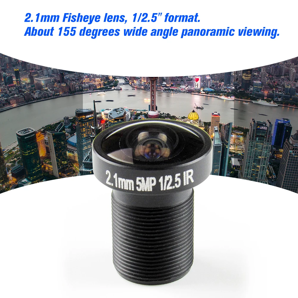 * 2,1 мм объектив «рыбий глаз», 1/2.5 "формат. Около 155 градусов широкоугольный панорамный обзор.