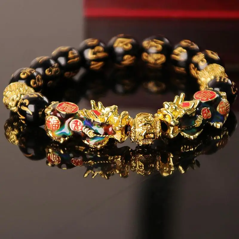 Золотой цвет изменение температуры цвет счастливый буддизм Pixiu браслеты храбрые солдаты Pixiu плетеные веревки энергии браслеты и браслеты