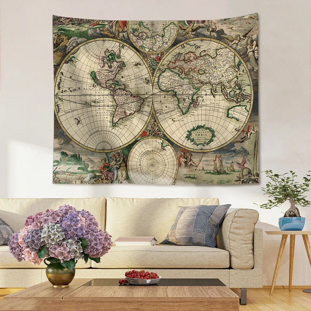Старинная карта мира, карта старого мира, карта парусного спорта, свитки, хлопок, холст, бескаркасная настенная декоративная подвесная карта