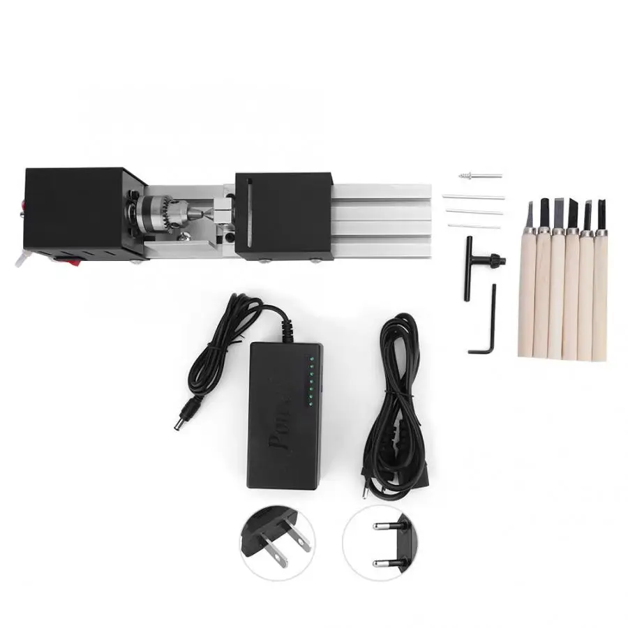 Предназначен для домашних любителей DIY, компактный и портативный, сильная мощность. 7 уровней адаптера питания позволяет регулировать скорость вращения для удовлетворения различных требований к механической обработке. Токарный станок использует шарикоподшипник с высоким крутящим моментом, скорость вращения до 8000 об/мин, предлагая супер сильную мощность резки с низким уровнем шума. Высококачественное основание из алюминиевого сплава и прочный стальной сверлильный патрон. Сверлильный патрон может зажимать различные вращающиеся инструменты разных размеров, идеально подходят для резки, резьбы, фрезерования, шлифования, полировки, сверления и многого другого.