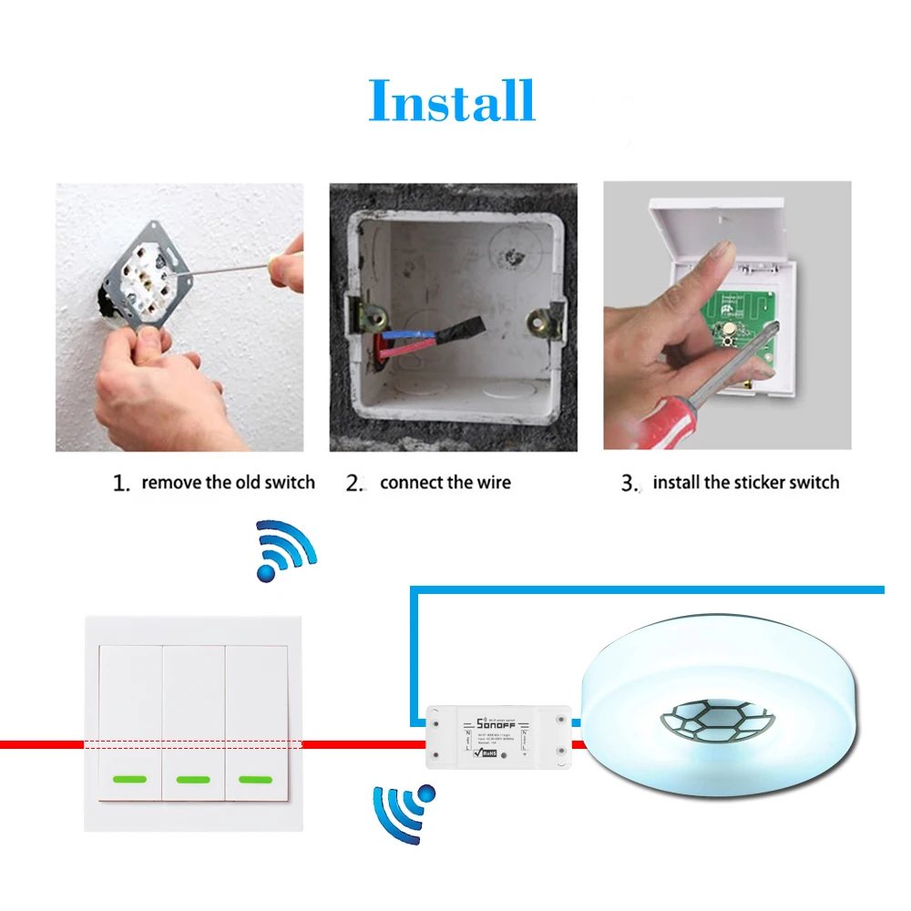 * Он может заменить пульт дистанционного управления для управления всеми продуктами SONOFF с функцией дистанционного управления 433 МГц RF, такими как T1 UK, T1 US, T1 EU, Slampher, Sonoff RF, Sonoff 4CH Pro.