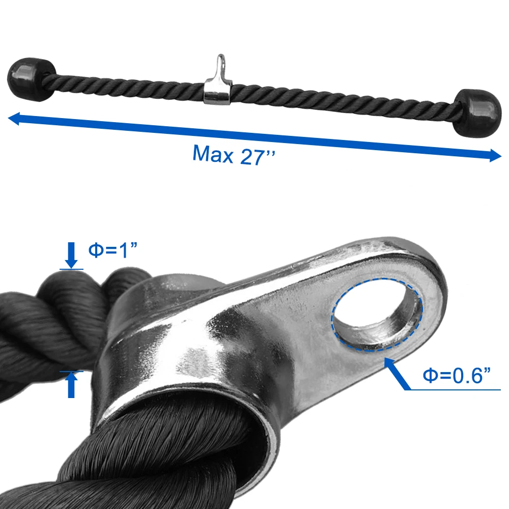 Сверхпрочная черная нейлоновая плетеная веревка, Растяжимая сила до 2200lb, с прочными резиновыми стопперами, предотвращающими скольжение или скольжение во время занятий. Потрясающая для тренажерного зала система шкивов для тренировки большой группы мышц и увеличения прочности захвата.