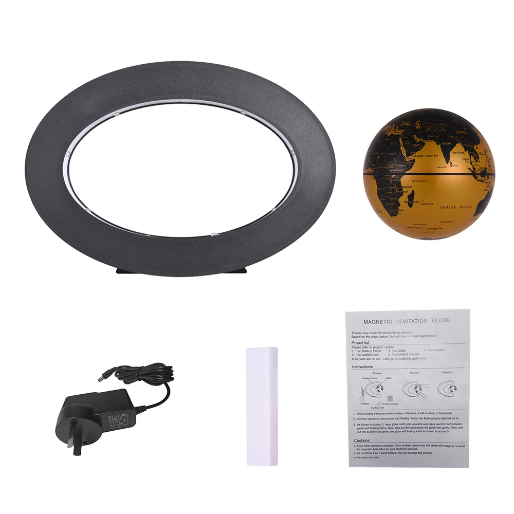 Простая установка и практичность:Поставляется с вспомогательными инструментами в упаковке, которые сделают Глобус левитировать и вращаться плавно; Также поверхность глобуса с картой мира и английским именем стран, может использоваться как демонстрация для обучения простой географии.