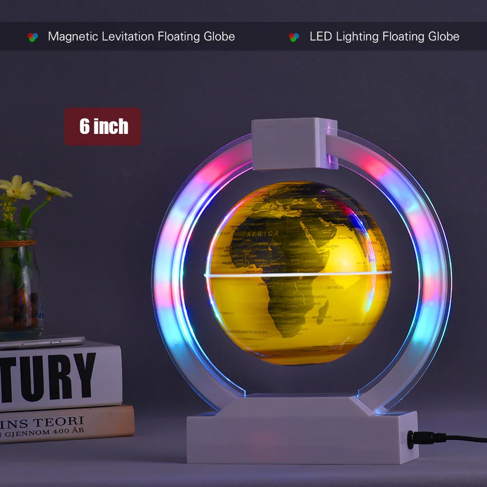 6 дюймов Магнитный левитационный Глобус освещение золотой земной шар со светодиодной Цветной подсветкой круглая основа для домашнего офиса украшение стола