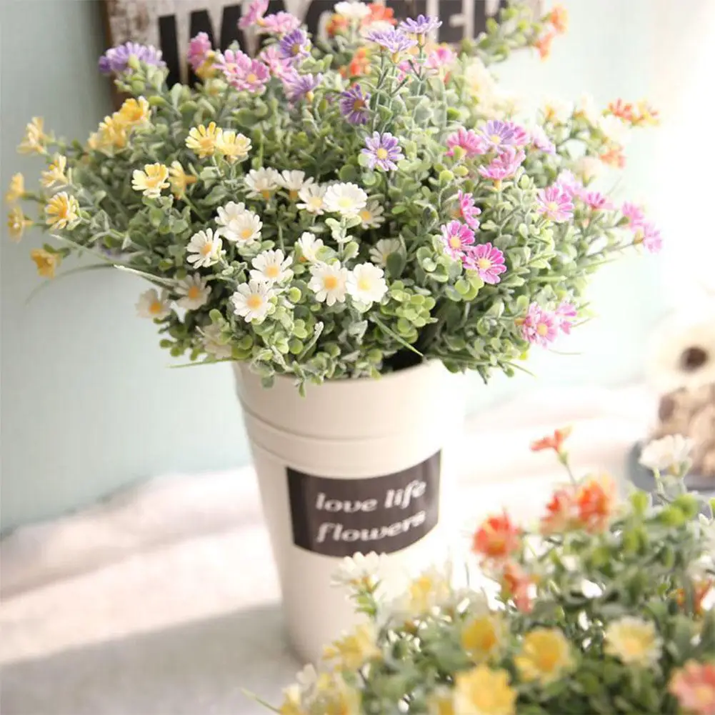 Искусственный цветок маленький букет ромашек Флокирование пластик в деревенском стиле стиль Свадебные украшения Спальня Декор для гостиной цветок