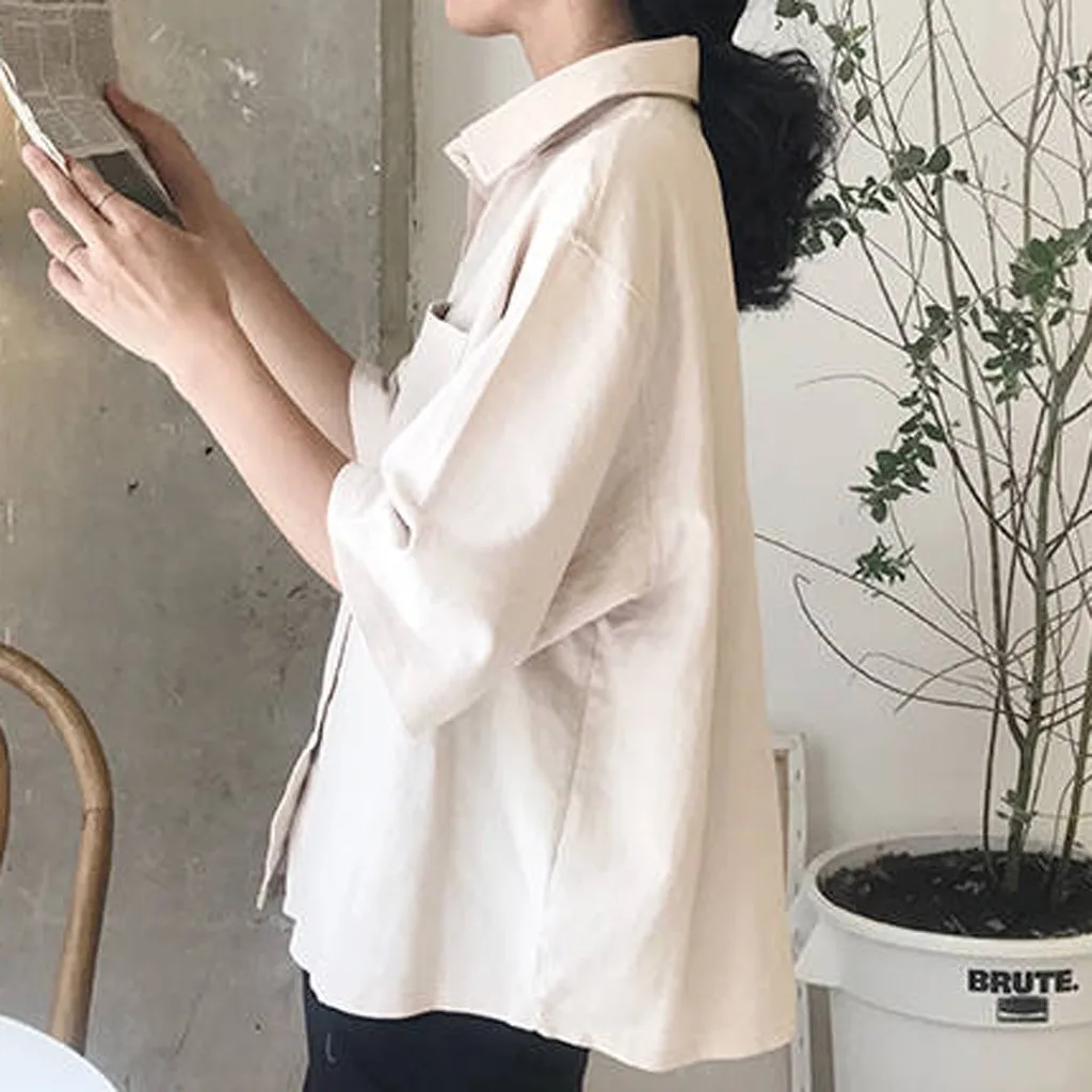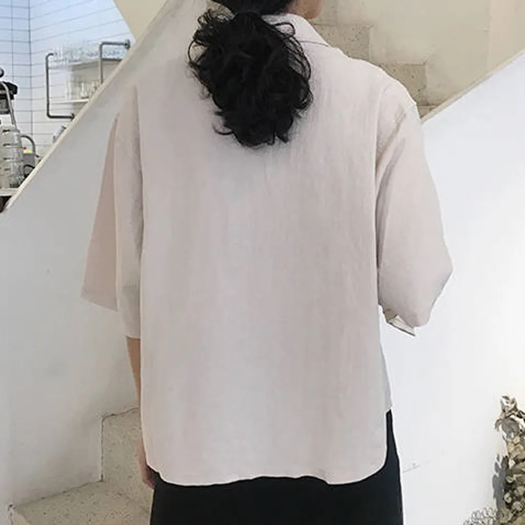 Женские Модные свитеры с пуговицами для отдыха; Однотонная футболка с короткими рукавами