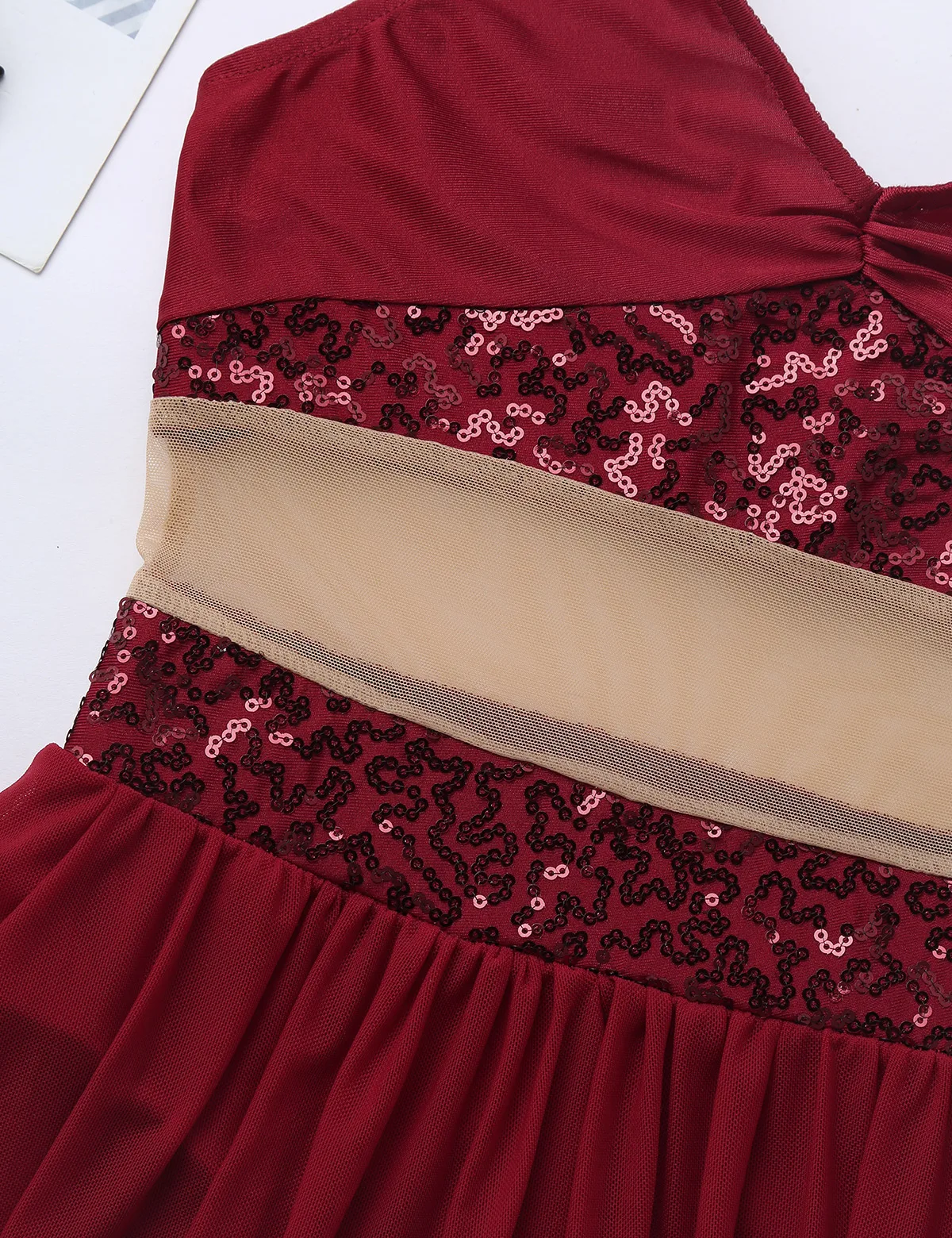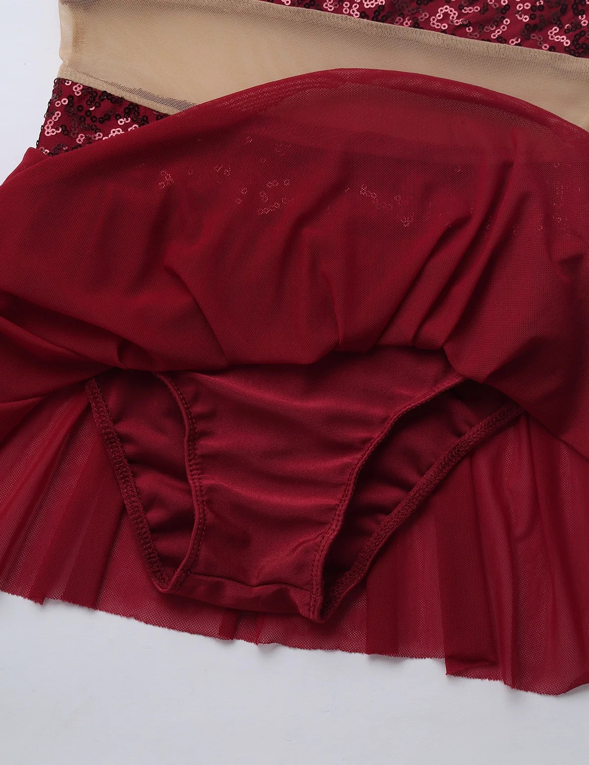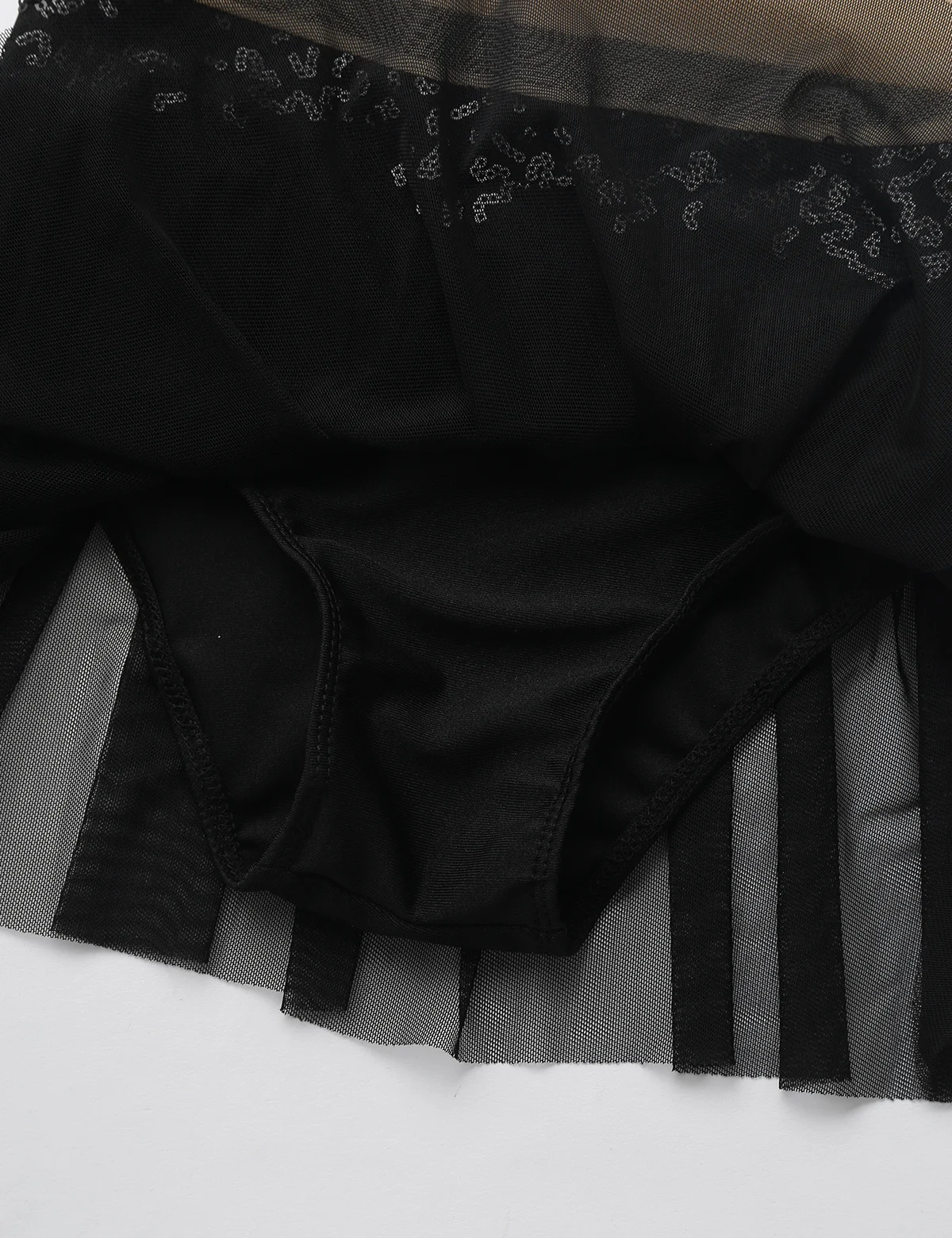 Платье для танцев изготовлено из полиэстера, сетчатого материала с блестками, ручная стирка.