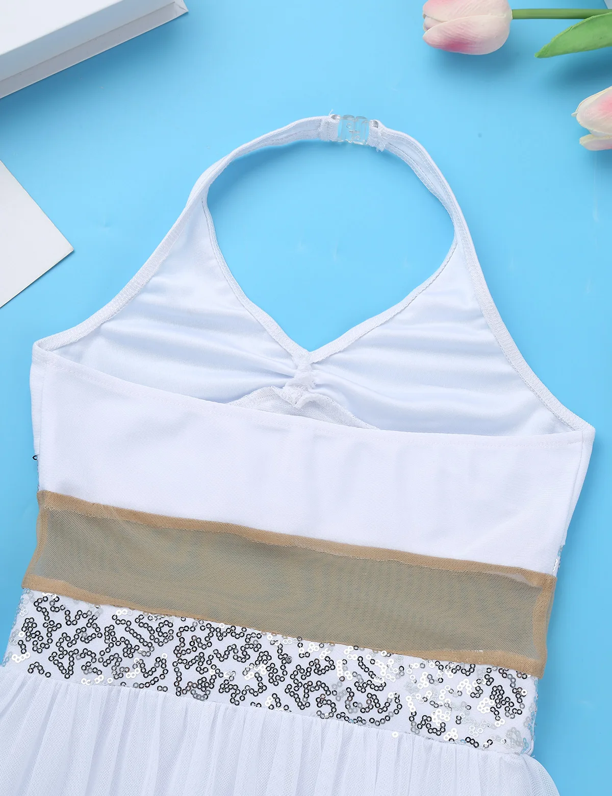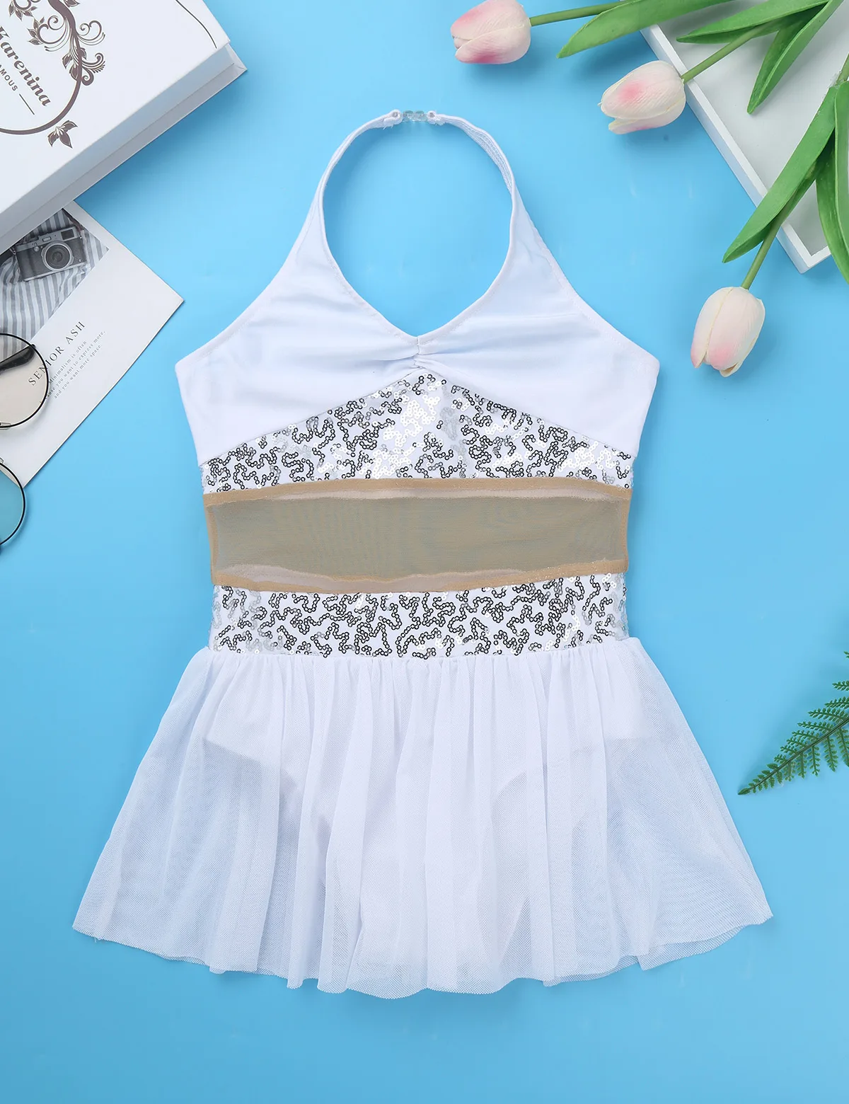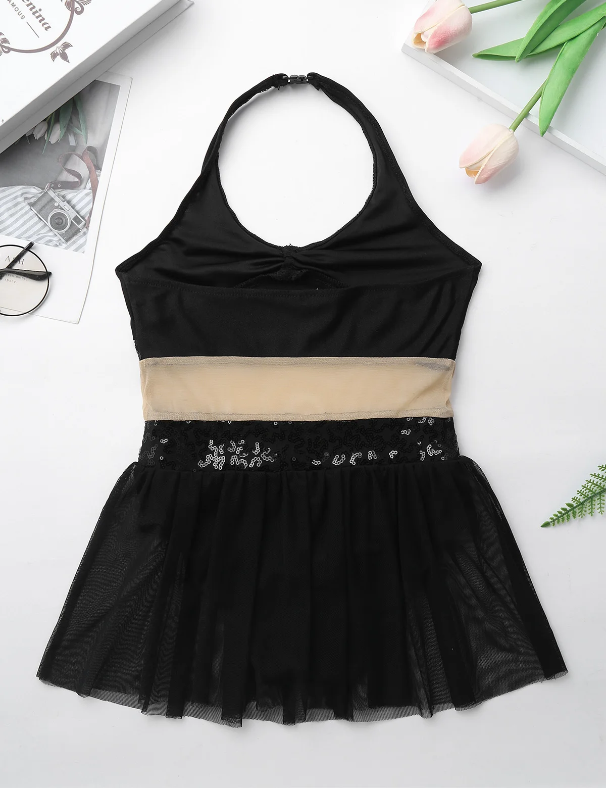 Платье для танцев изготовлено из полиэстера, сетчатого материала с блестками, ручная стирка.