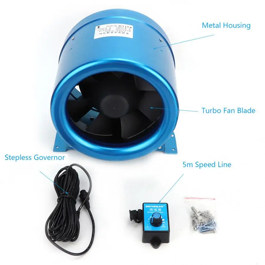 8 дюймов Регулируемый регулятор скорости воздуховод вентилятор для гостиничных комнат 75 Вт 3800 об/мин 1205m ³/ч 710CFM AC220V