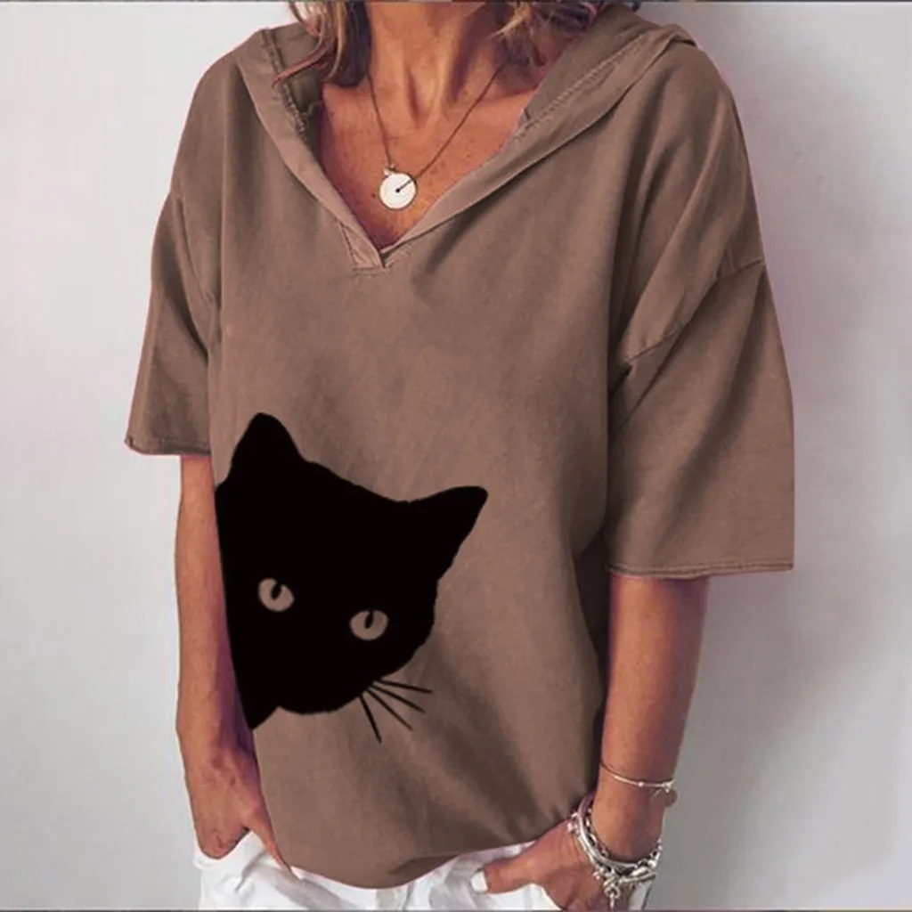 Модные женские свободные повседневные хлопковые и льняные топы с принтом головы кота, футболка