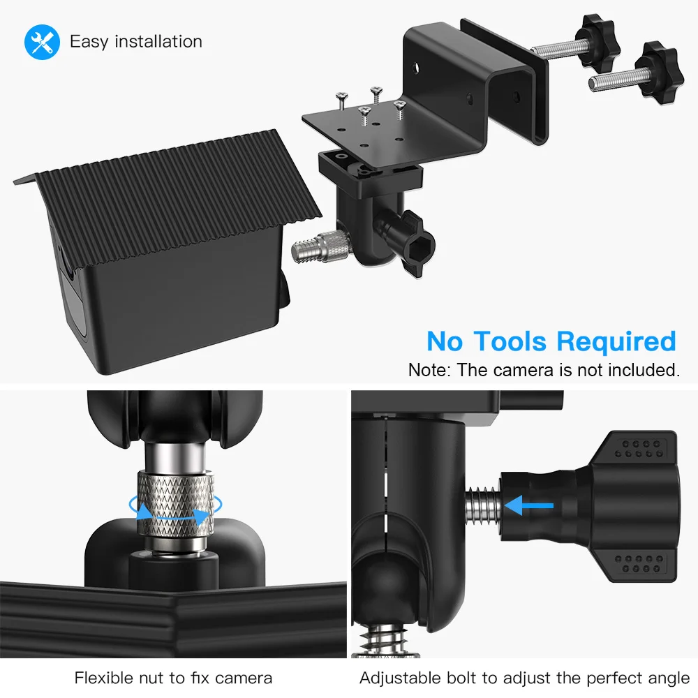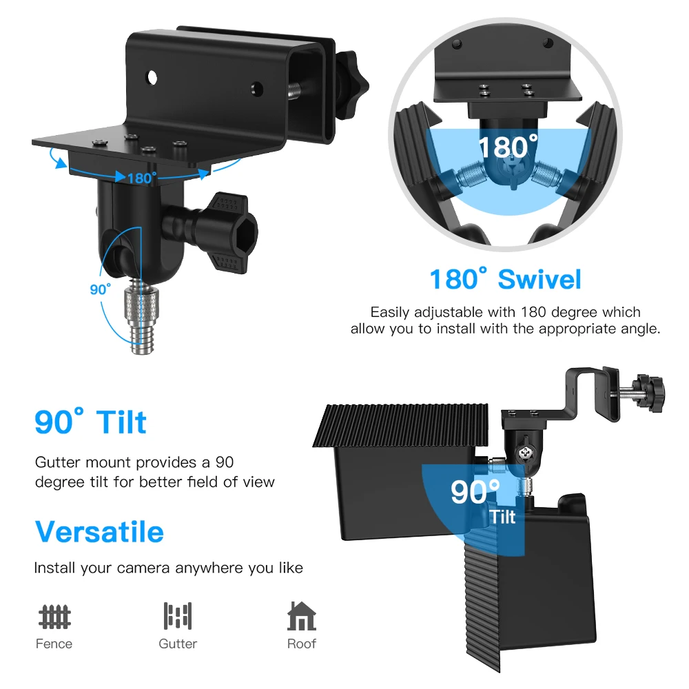 【Любой Угол регулировки 】Крепление легко регулируется с поворотом на 180 градусов, что позволяет установить под соответствующим углом. Крепление желоба обеспечивает наклон 90 градусов для лучшего поля зрения.