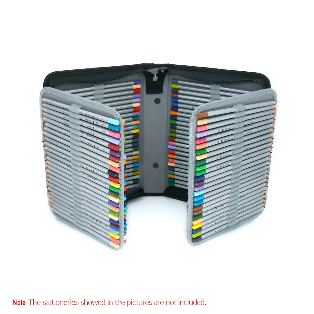 Безопасное хранение: 120/ 150 отдельных слотов для каждого карандаша или ручки. Эластичный ремешок и прочная молния удерживают карандаши или ручки от выпадения.