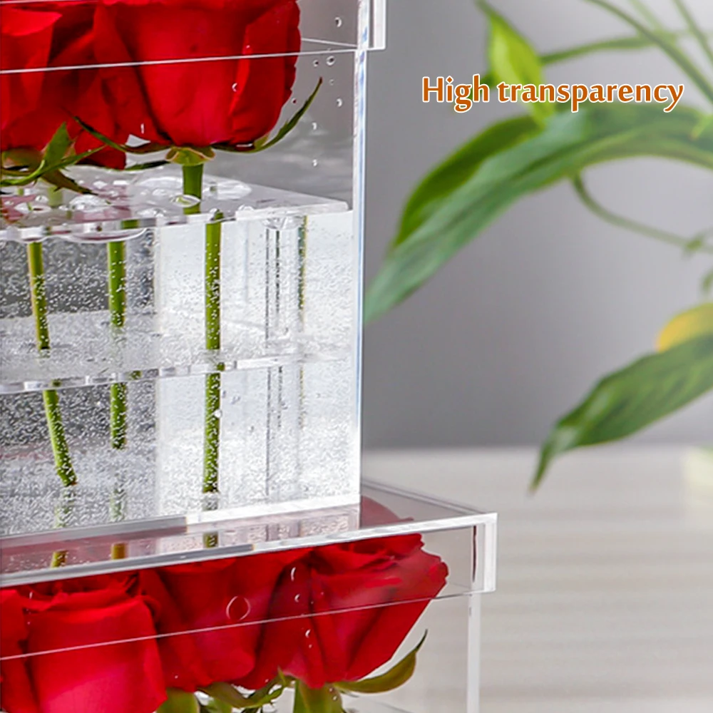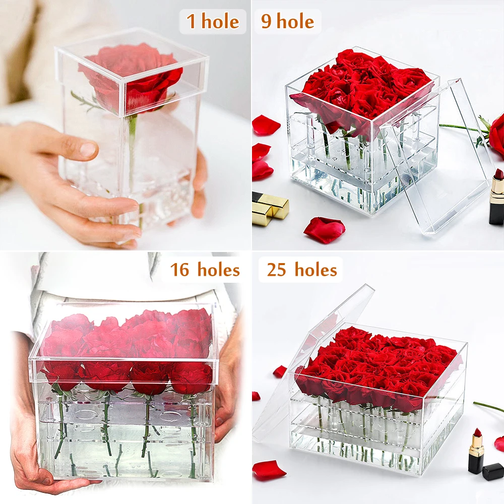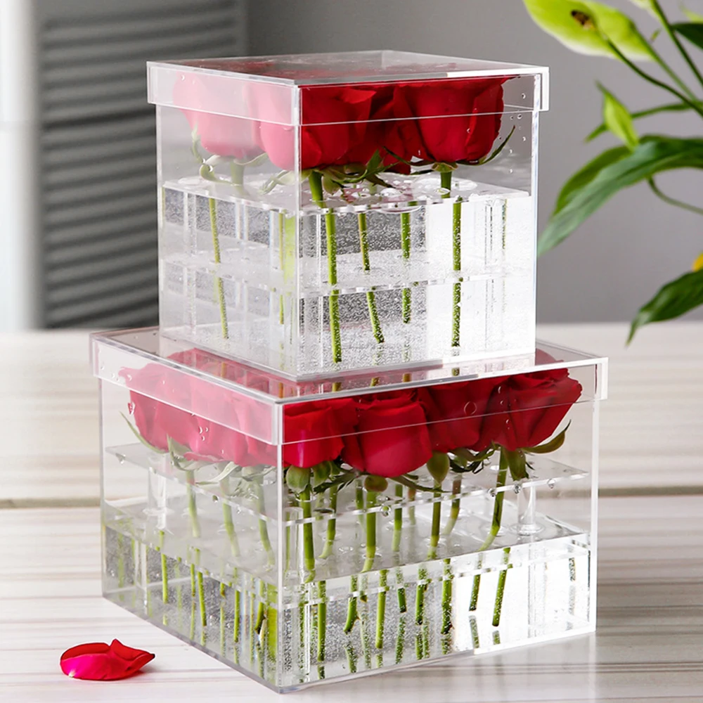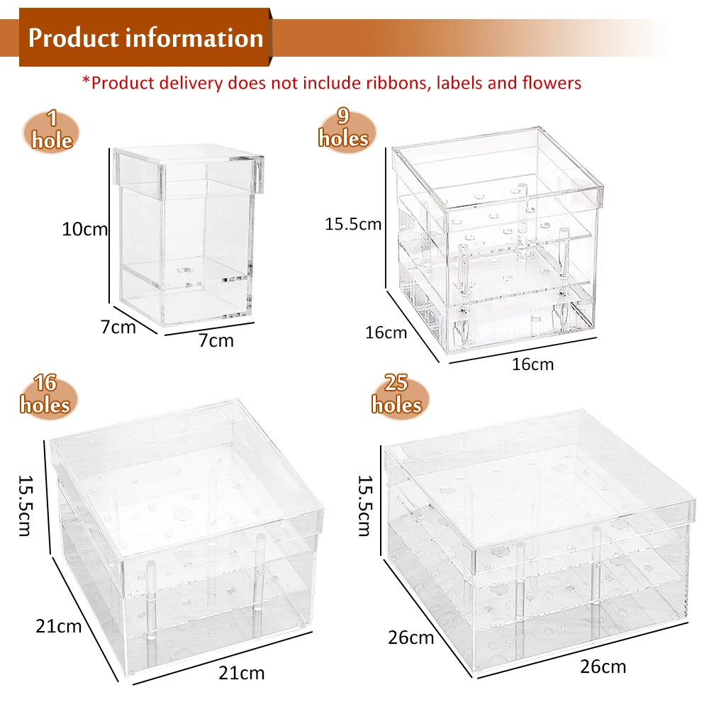 • Материал: акрил. Наши цветочные коробки изготовлены из плексигласа, прочные, ударостойкие и прозрачные.