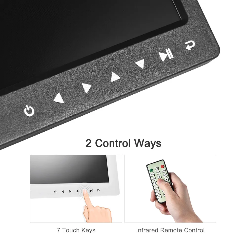 Может управлять цифровой фоторамкой с помощью сенсорных клавиш на передней или в комплекте с пультом дистанционного управления, легко и удобно работать.