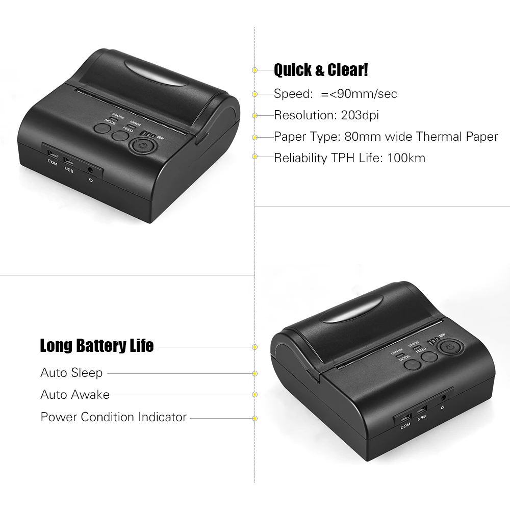 Можно напечатать 80 мм широкую тепловую бумагу, долгий срок службы 100 км, вы можете легко переключить язык печати.