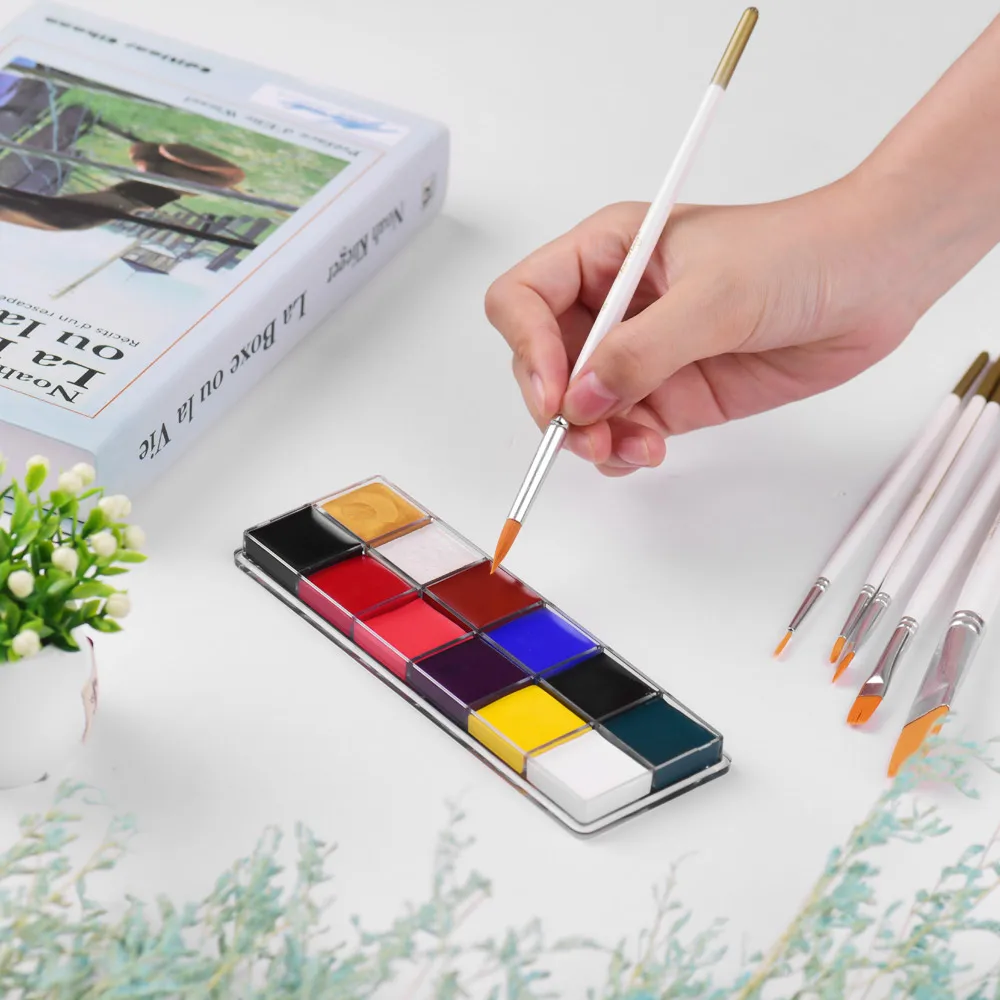 Безопасен в использовании:Цветные краски для лица, нетоксичные и бессвинцовые, подходят для чувствительной кожи, пигментированные и натуральные ингредиенты пищевого качества, не зучат, не трескаются и не раздражают кожу.