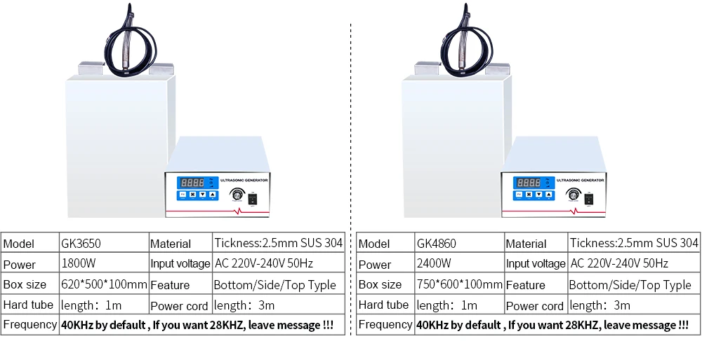 * По умолчанию SUS304 и 28/40 кГц; Если требуется SUS316 бак или 68 кГц/120 кГц высокой частоты, пожалуйста, свяжитесь с нами!
