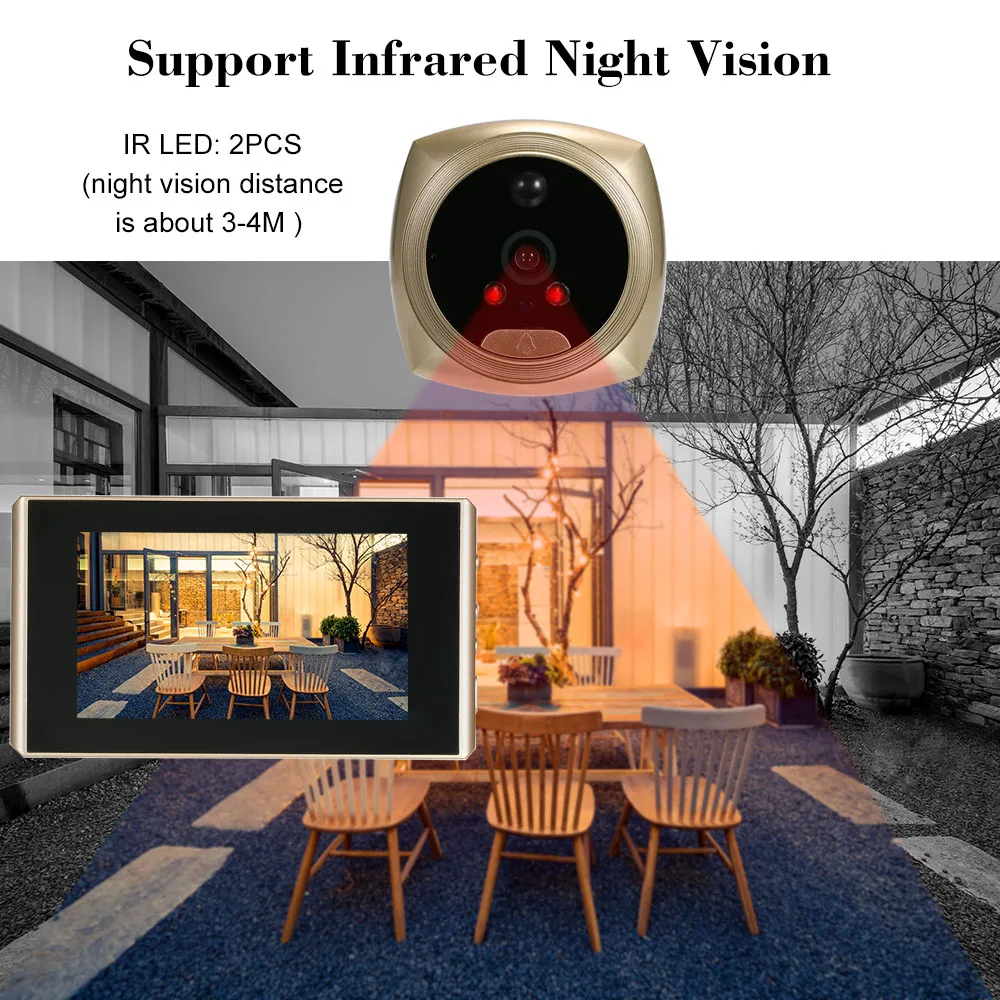 * 4,3 "ЖК-экран внутренний дверной звонок с одной наружной глазок камеры (с кнопкой вызова на глазок), элегантный и практичный дизайн.