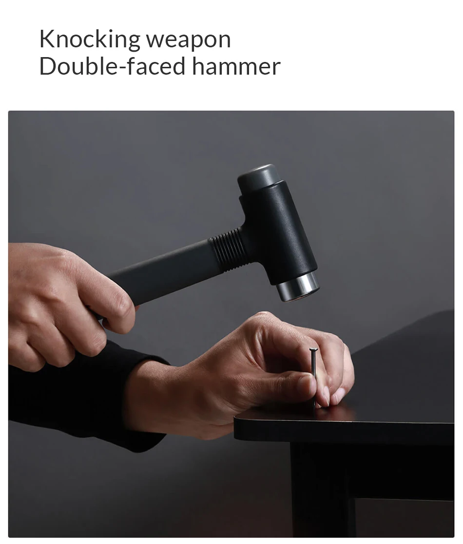 Головка молотка изготовлена из материала PU и твердой углеродистой стали. Он полностью адаптирован к материалу различной твердости. Ручка молотка принимает TPE приятный для кожи Противоскользящий материал, который может снять ударную силу, генерируемую нарезанием, и рука ощущается комфортно и экономит работу.