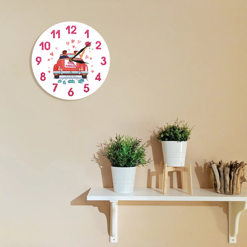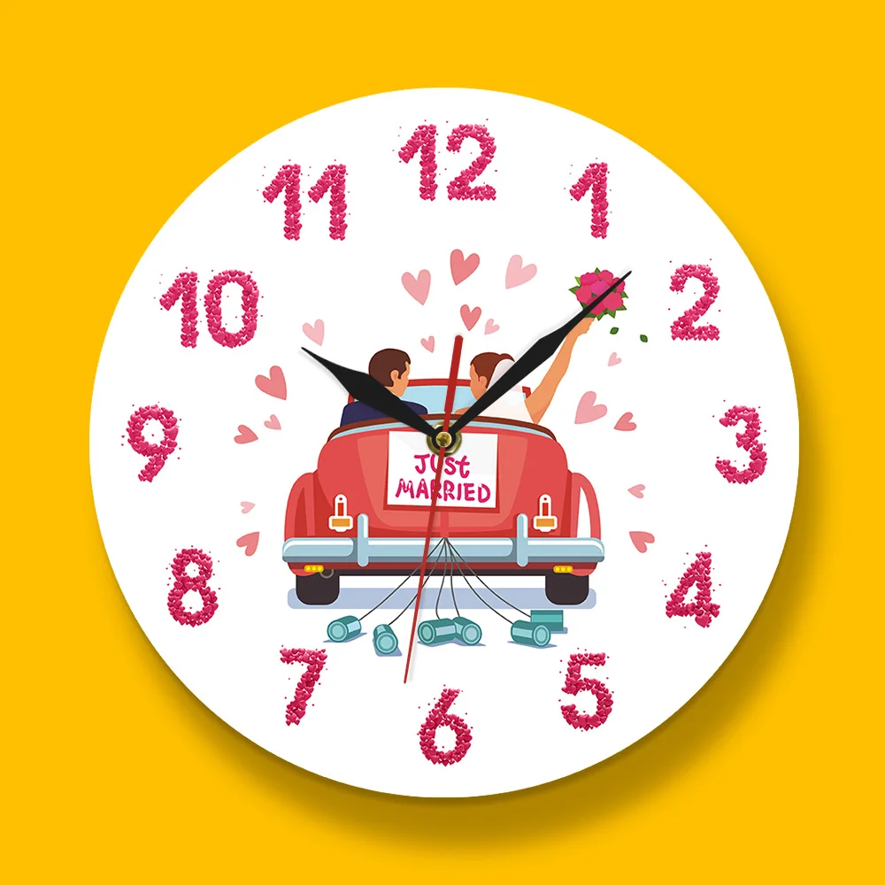 Вы ищете красивые настенные часы? Это может быть ваш шанс получить его. Изготовленные на заказ свадебные настенные часы-это качественный принт жикле, который имеет яркие цвета, которые сохранят свой цвет в течение многих лет. Лицо напечатано на акриловой пластине. Края красиво отделаны. Вы оцените твердое качество и ощущение этих красивых часов. Это даже может быть идеальным украшением для вашей комнаты или полок, если вы хотите. Вы можете использовать его дома, в офисе или в любом месте, где вы хотите его положить. Этот предмет делает уникальный акцент в качестве полезного декоративного циферблата.