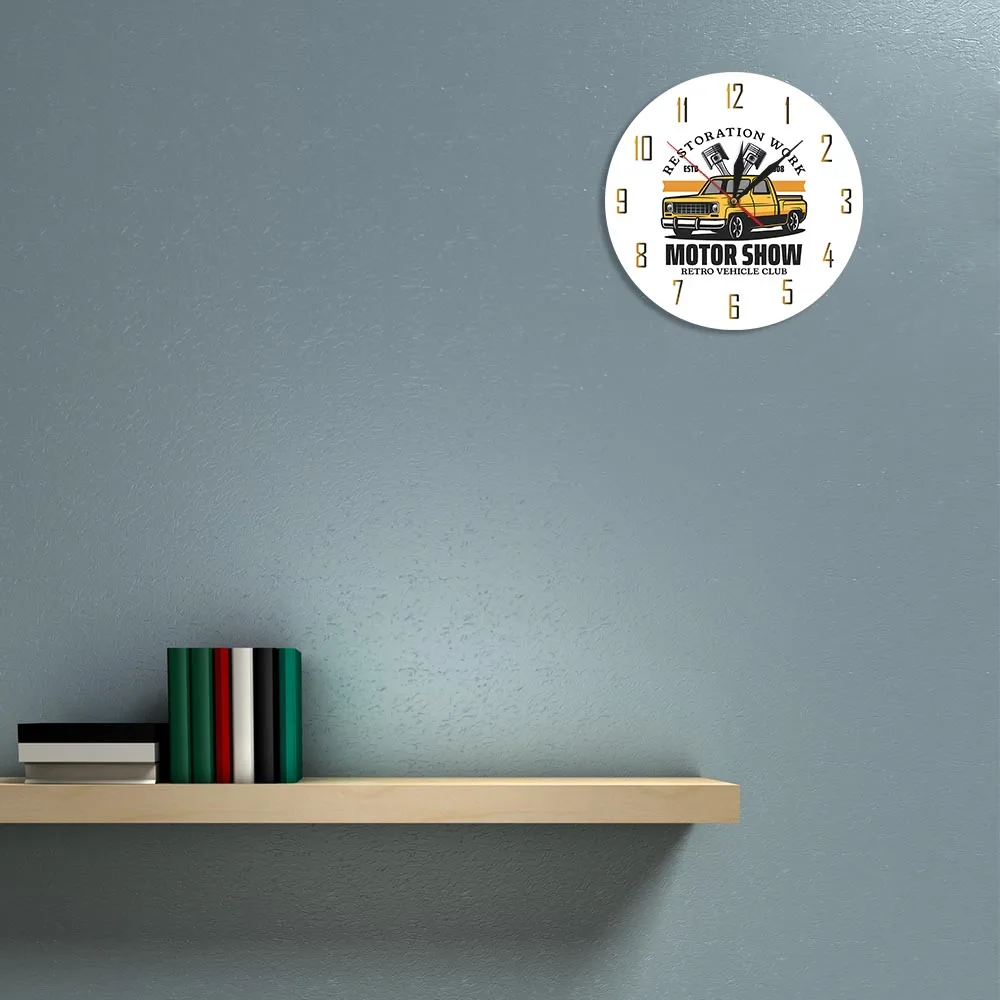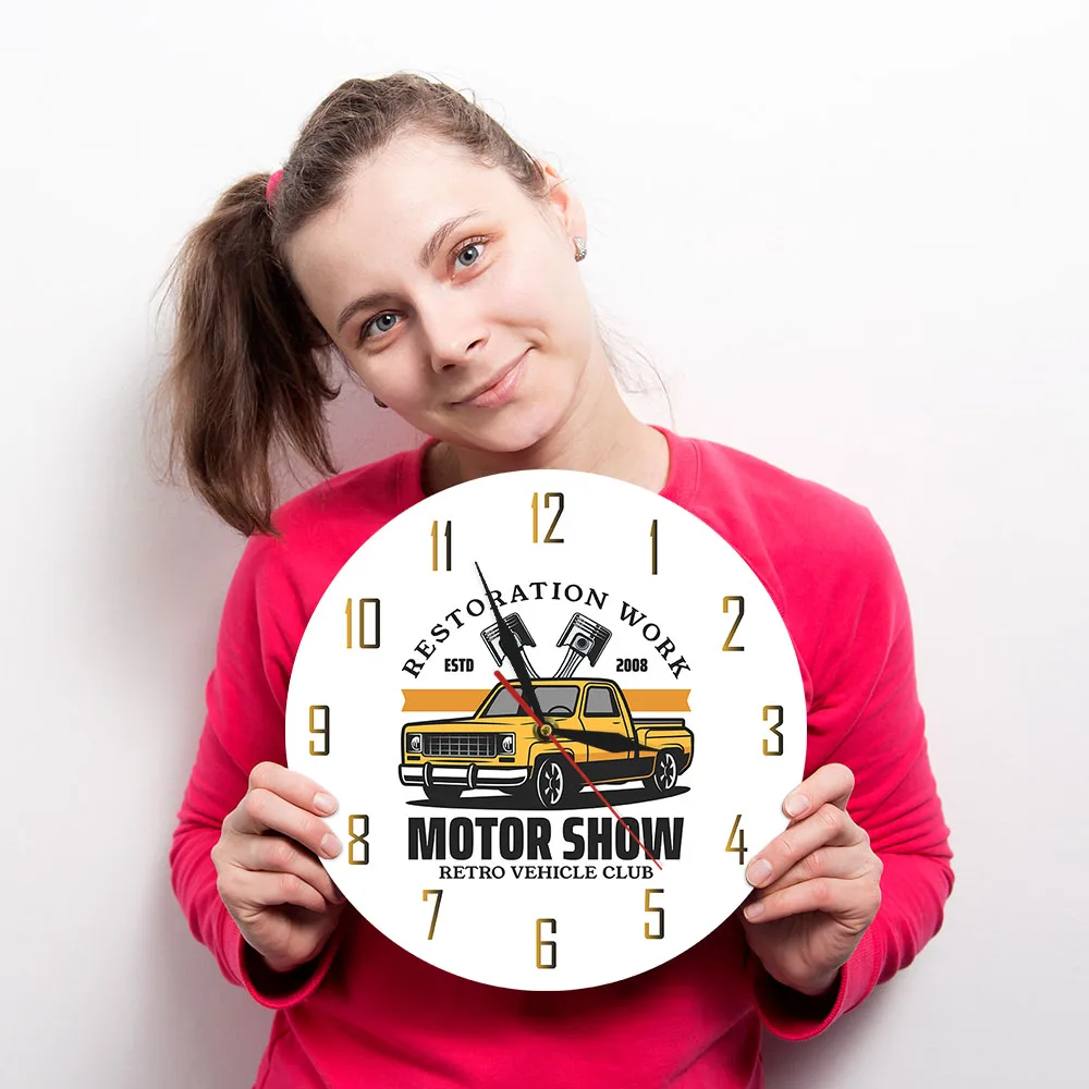 Вы ищете красивые настенные часы? Это может быть ваш шанс получить его. Изготовленные на заказ гаражные настенные часы-это качественная печать Жикле, которая имеет яркие цвета, которые сохранят свой цвет в течение многих лет. Лицо напечатано на акриловой пластине. Края красиво обработаны. Вы оцените твердое качество и ощущение этих красивых часов. Это даже может быть идеальным украшением для вашей комнаты или полок, если вы хотите. Вы можете использовать его дома, в офисе или в любом месте, где вы хотите его положить. Этот предмет делает уникальный акцент в качестве полезного, декоративного хронометра.