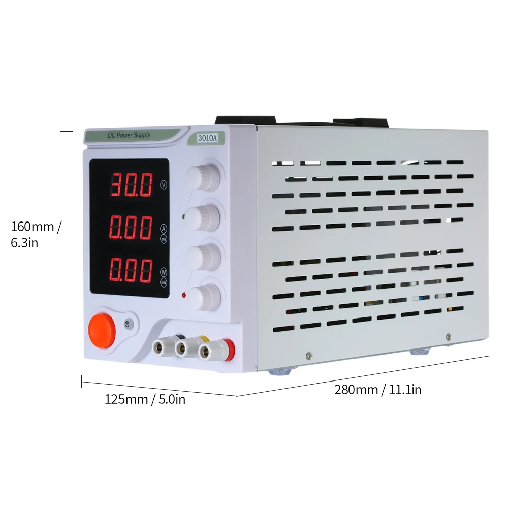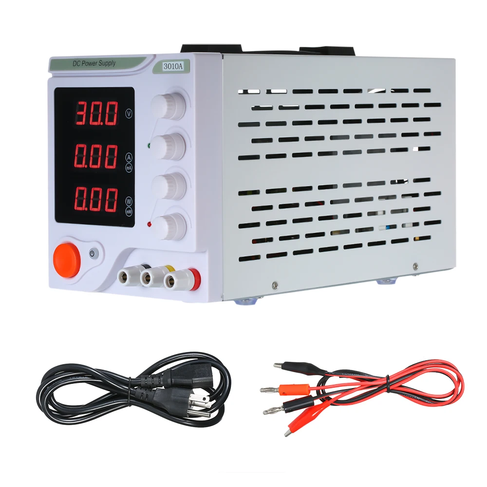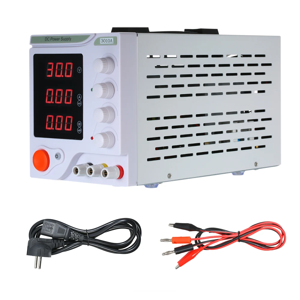 Это один выход постоянного тока, Регулируемый источник питания, светодиодный цифровой дисплей. Он отображает напряжение, ток и мощность одновременно. Он портативный и маленький, а напряжение и ток можно регулировать непрерывно.