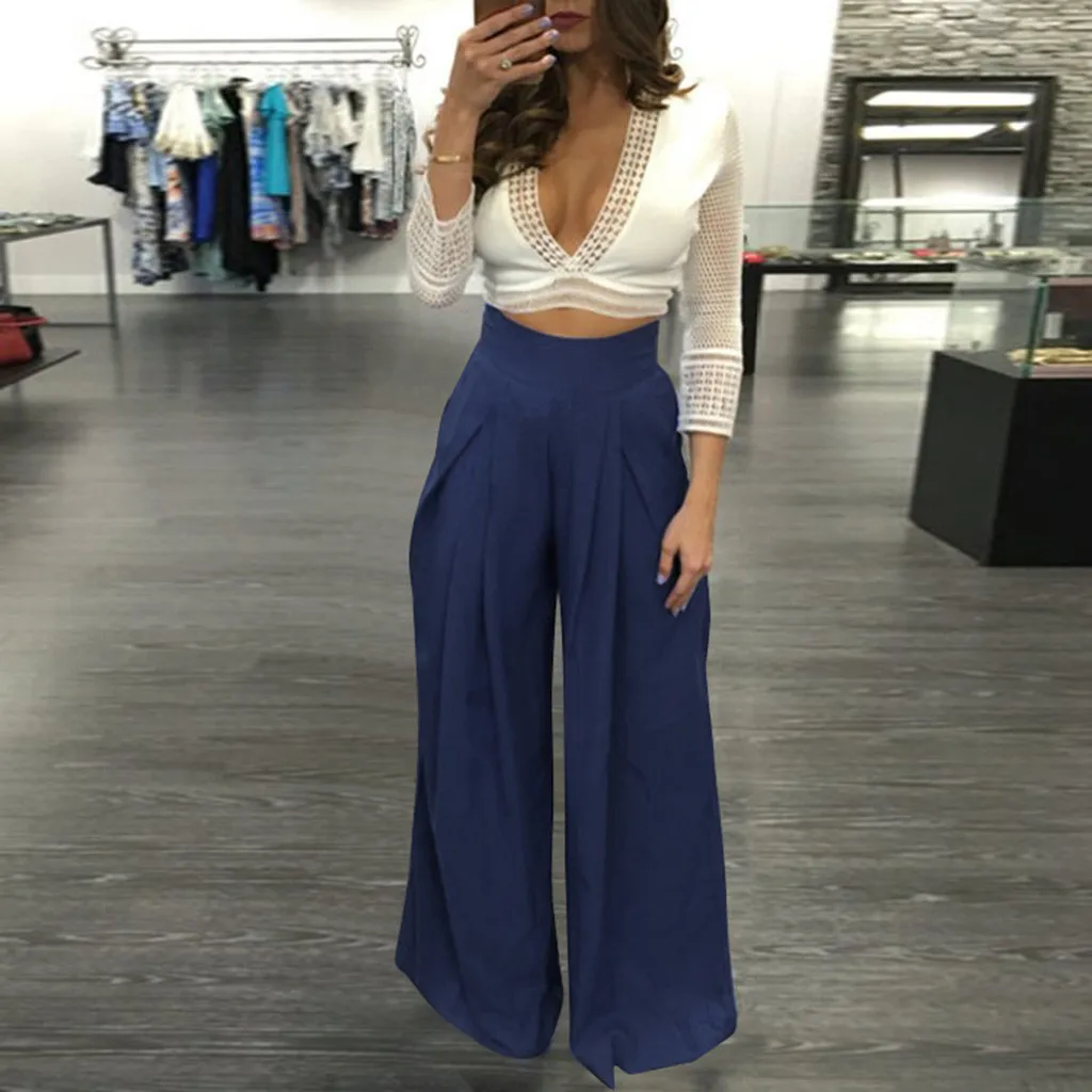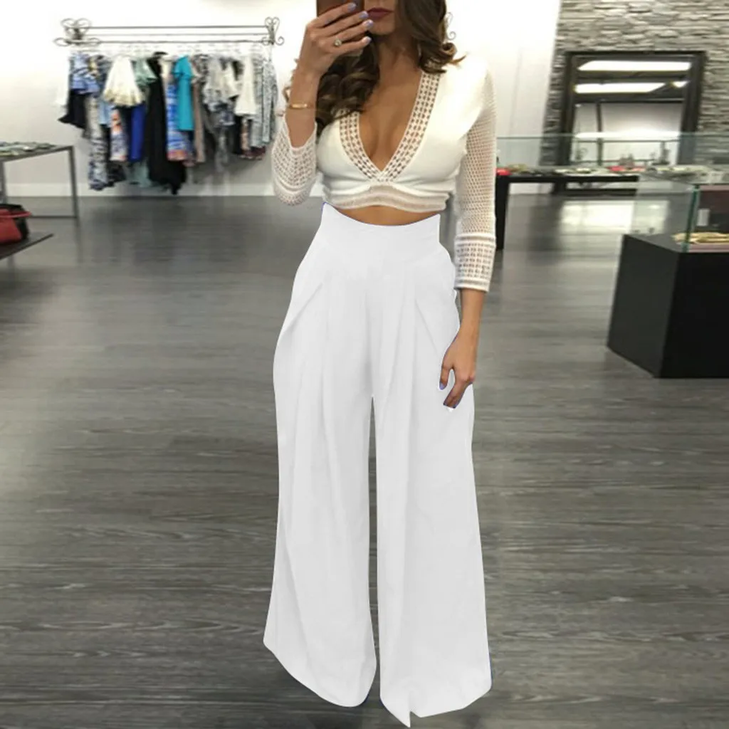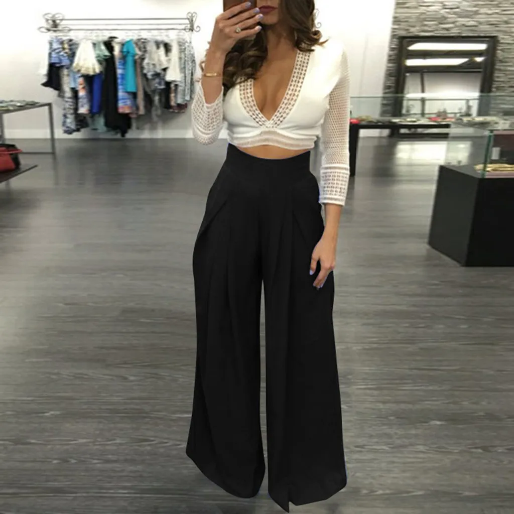 Женские широкие брюки с высокой талией, сексуальные шифоновые брюки на молнии, штаны для танцевальной вечеринки