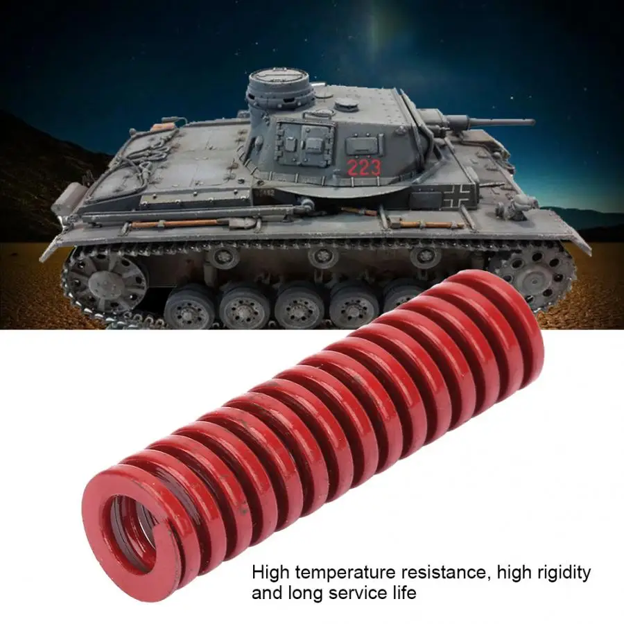 Штампованные пружины в основном используются в штамповочных машинах. Высокая термостойкость, высокая жесткость и длительный срок службы. Его внутренний диаметр составляет половину внешнего диаметра в целом. Для штампованных пружин красный цвет означает, что класс нагрузки-средняя нагрузка. Широко используется в штамп для чеканки, литья металла, пластиковой формы и других упругих машин, автомобильных и других полей.