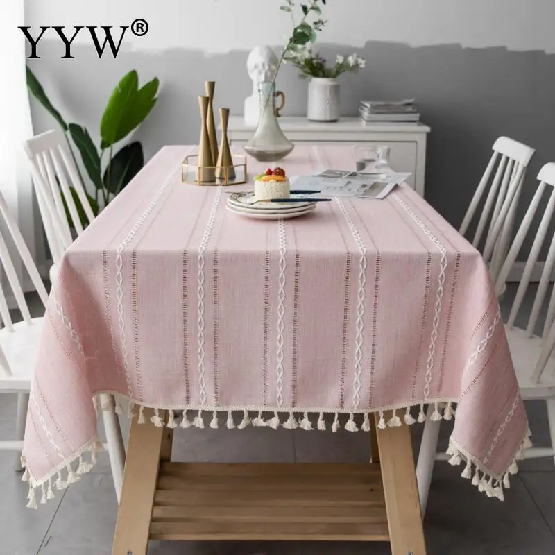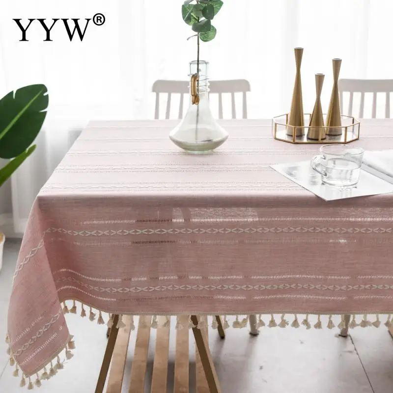 Скатерть с кисточками из хлопчатобумажной ткани, модные украшения оптом, разные размеры на выбор, прямоугольная, розовая, продается ПК