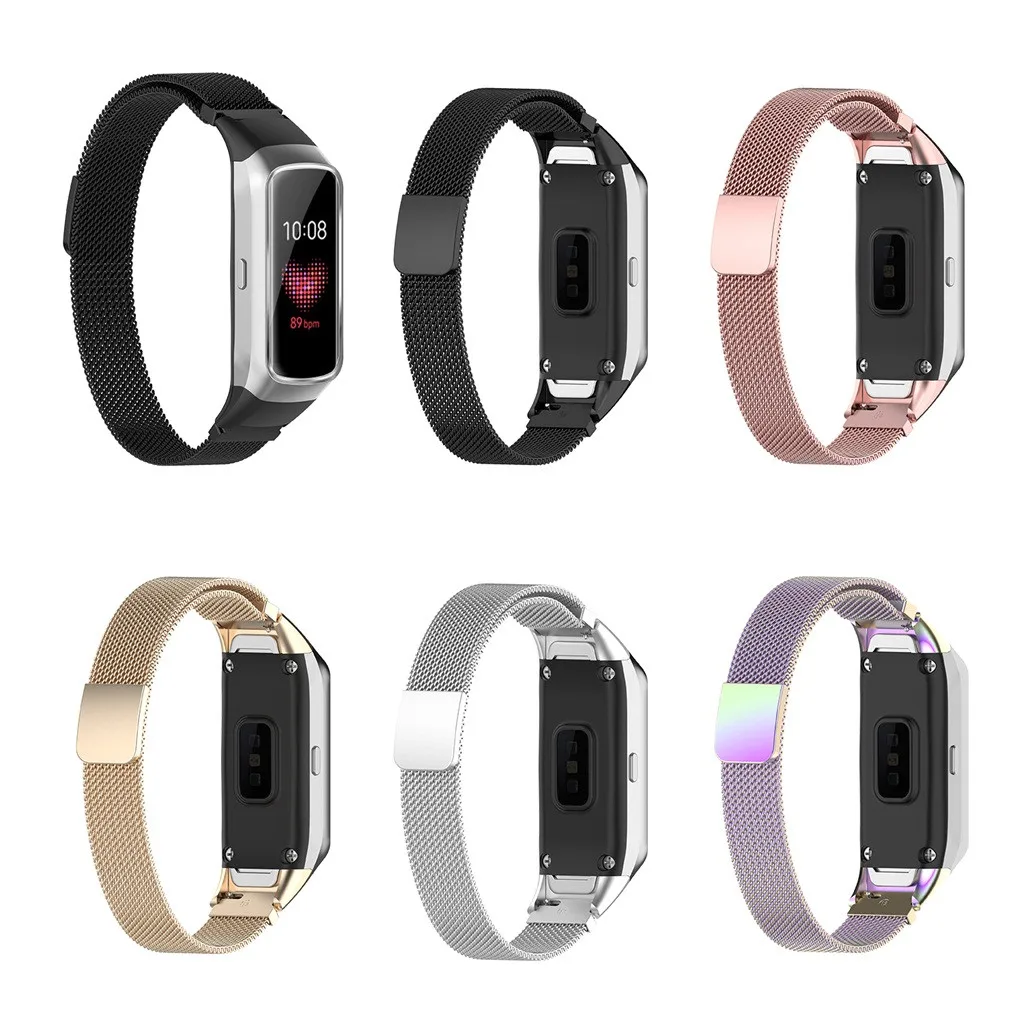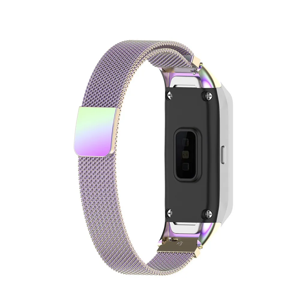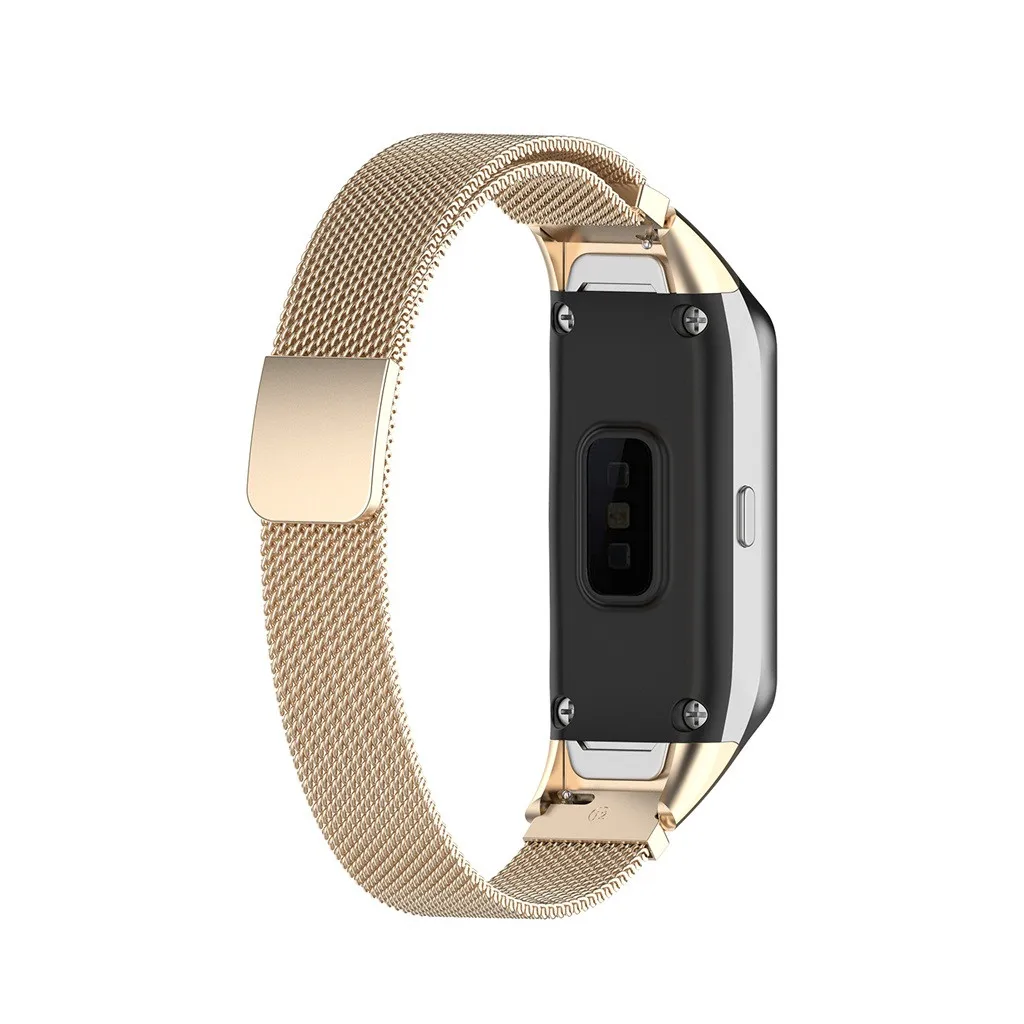 100% новый и высококачественный Сетчатый ремешок из нержавеющей стали, дышащий Магнитная пряжка, удобно надевать или снимать Подходит для samsung Galaxy Fit Band Утягивающий шнур для регулировки длины ремешка, очень удобно Длина ремешка: 12x190 мм Посылка включает в себя: 1 x модный браслет сменный ремешок для наручных часов