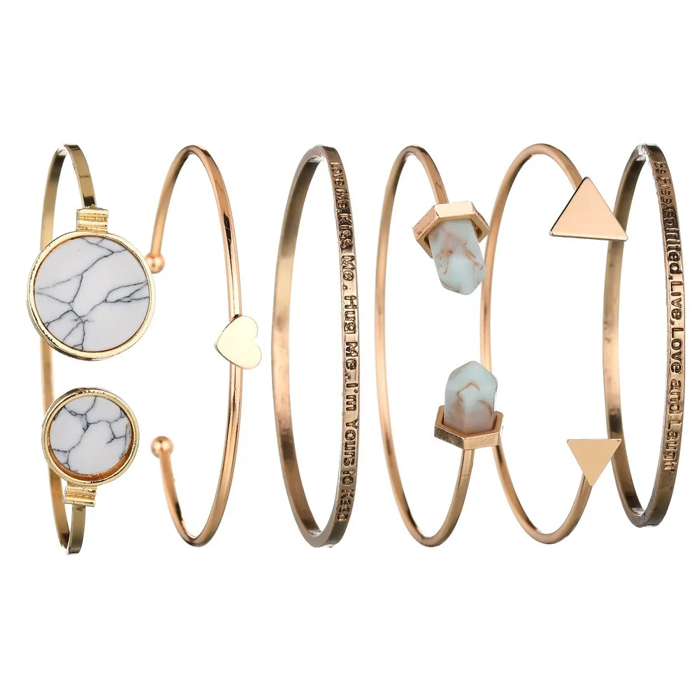 Set of 6 PCS Classic Gold Tone Love Luck Cuff Bangle Bracelets Set For Women