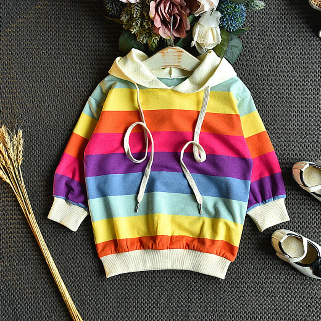 Платье с длинными рукавами и радужной юбкой с капюшоном для маленьких девочек