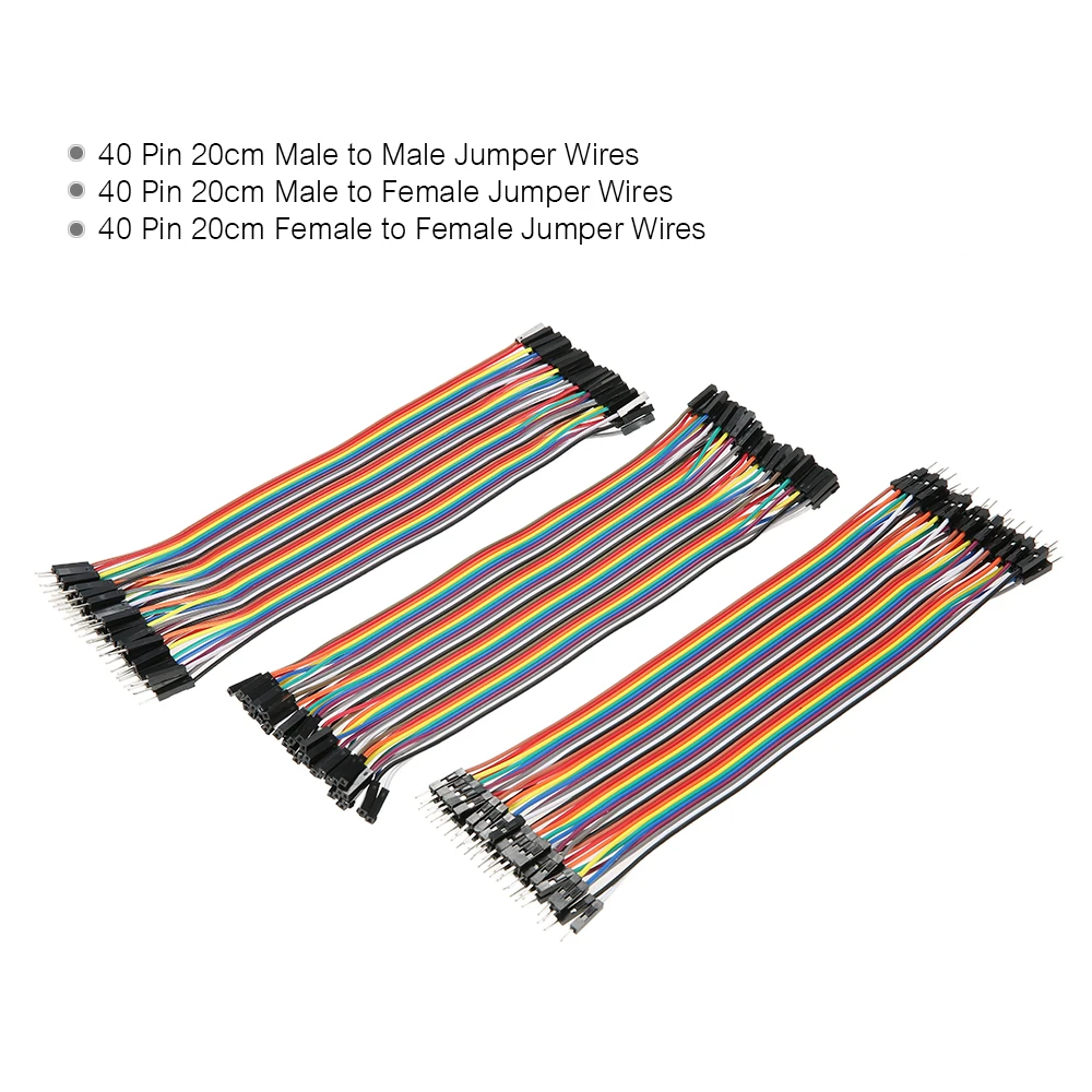Этот комплект проводов перемычки включает 240 проводов перемычки в 3 различных типах и 2 различных длины (10 см и 20 см), 80 pin M/M перемычки провода (каждая длина для 40 pin), 80 pin M/F перемычки провода (каждая длина для 40 pin), 80 pin F/F перемычки провода (каждая длина для 40 pin), достаточно для вашего различного использования.