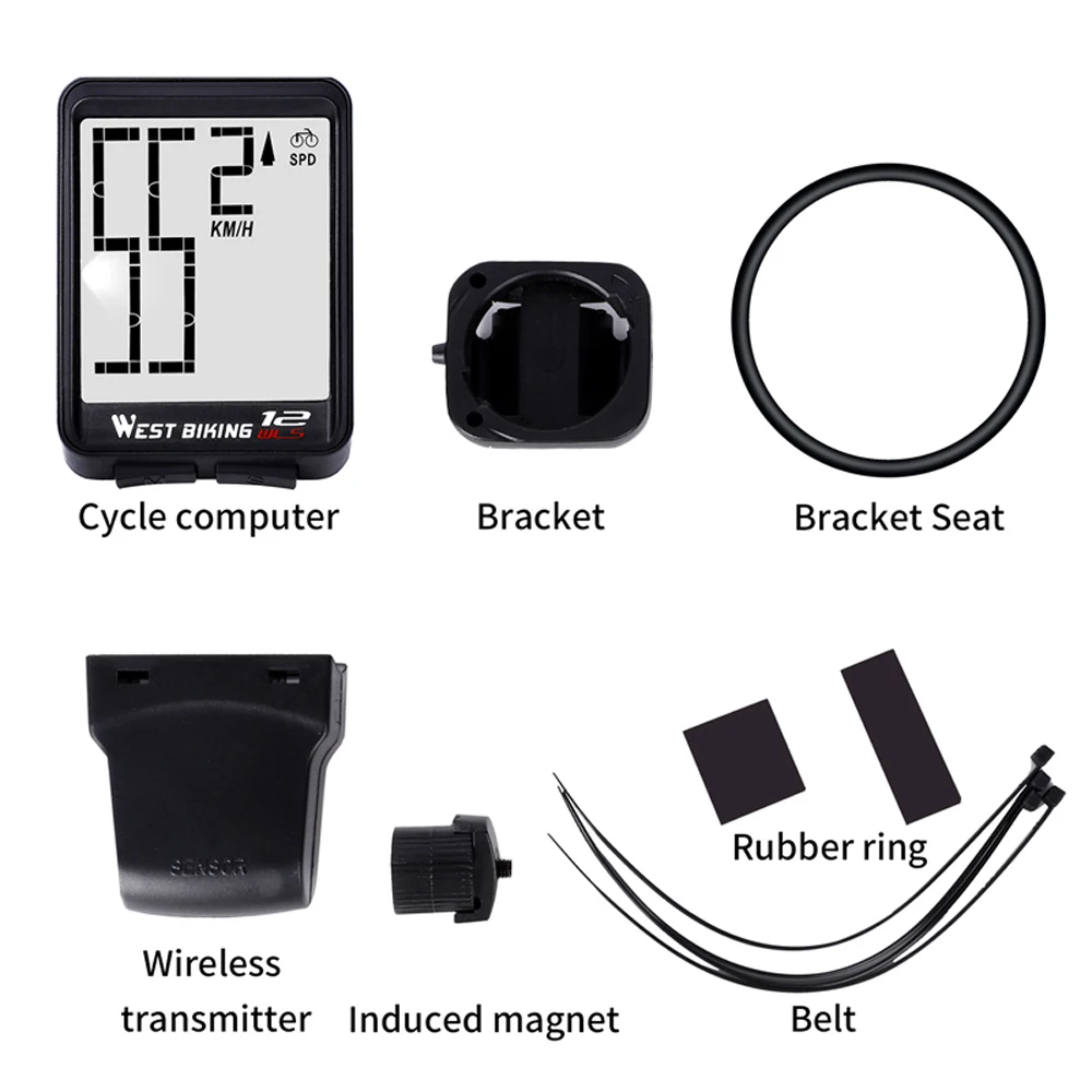 Примечание: Беспроводной датчик, фиксируется на переднем колесе, магнит фиксируется на спице, основной блок закреплен на руле и, пожалуйста, удалите изоляционную бумагу перед использованием.