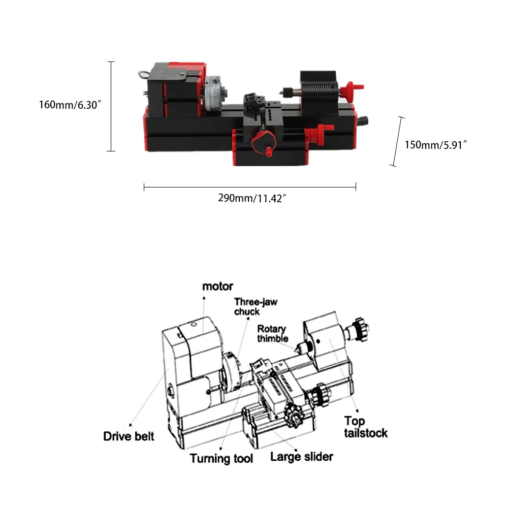 Размер токарного станка: 29*15*13 см/11,42*5,91*5,12 дюймов