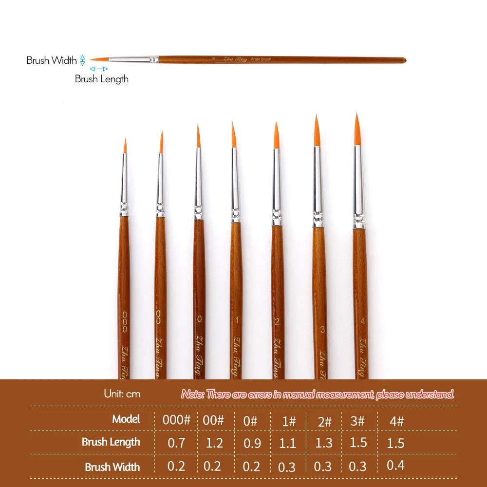 7 шт круглых кистей разного размера, включая круглые ручки #000, #00, #0, #1, #2, #3, #4, может удовлетворить различные потребности живописи.