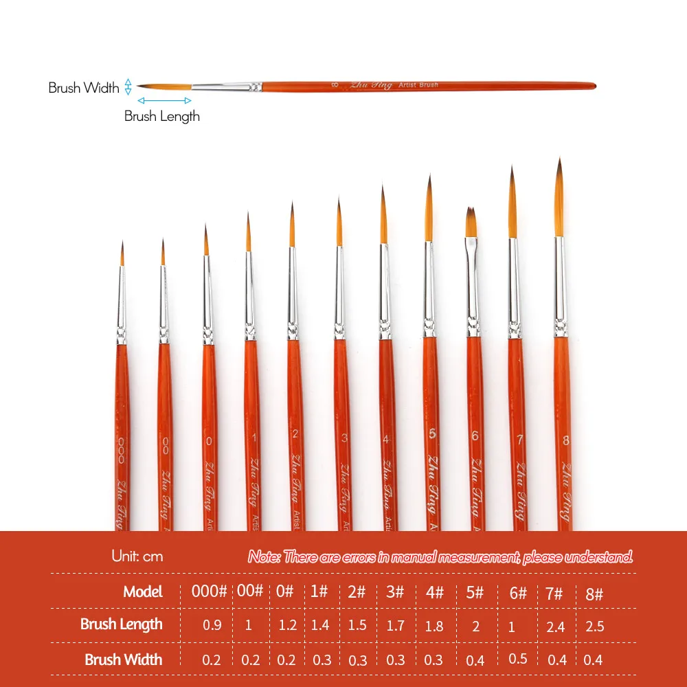 Набор кистей включает 11 круглых кистей для краски разного размера, они круглые ручки #000, #00, #0, #1, #2, #3, #4, #5, #6, #7, #8, удовлетворяет ваши различные потребности в живописи.