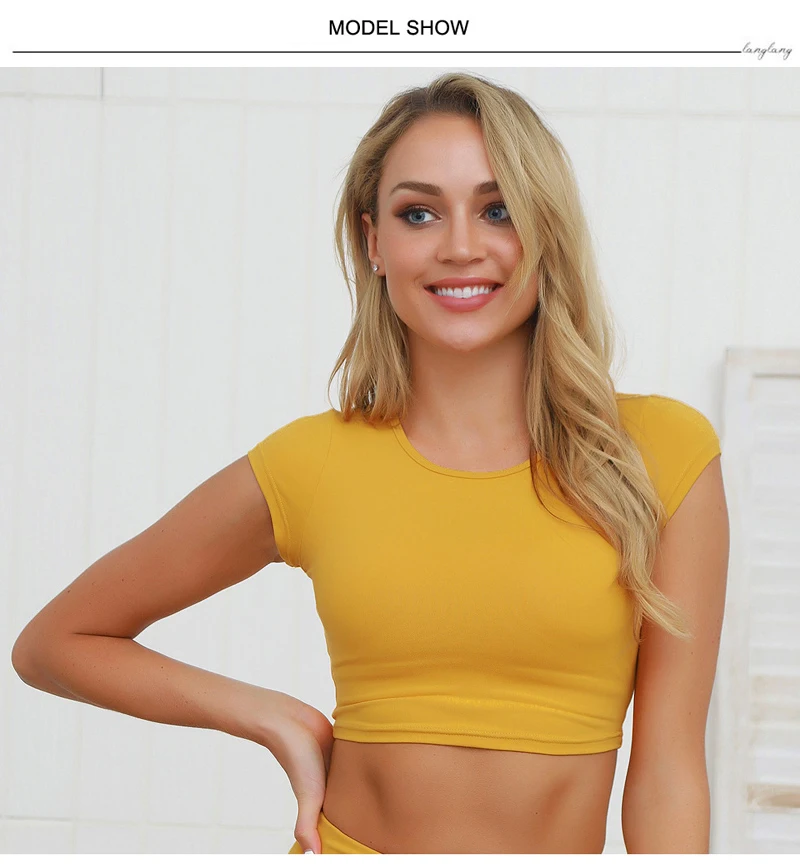 Топ для занятий йогой, спортивный топ для йоги, спортивная одежда Фитнес Для женщин спортивная рубашка с короткими рукавами, с короткими с дышащим верхом Для женщин Йога Рубашка тренировки Фитнес Спортивная одежда для Для женщин тренажерный зал