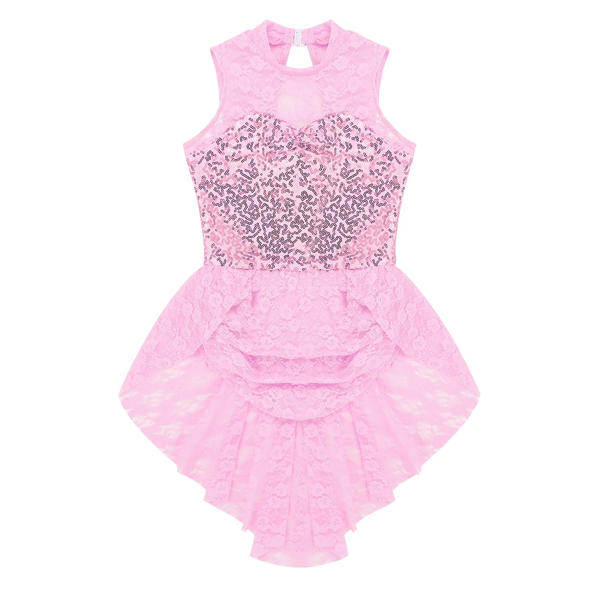 Вырез на спине. 1 многослойная драпированная кружевная юбка с высокой талией, прилегающая к талии. Красивая Одежда для танцев для вашей девочки.