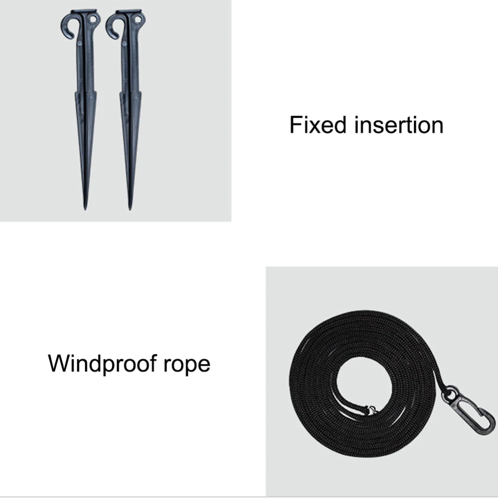 -Встроенный вентилятор, колыбели и тросы. Просто нужно подключить к стандартной розетке. Карман в нижней части предназначен для тяжелых предметов, чтобы сделать его стоящим без кольев.