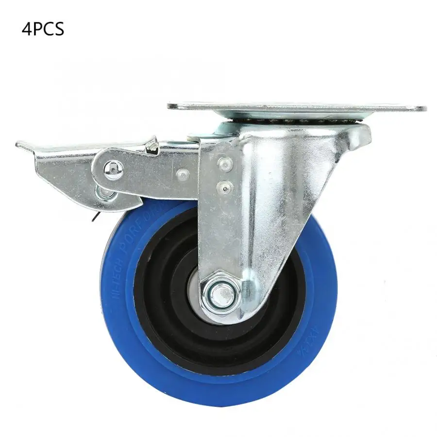 4 шт 4-дюймовый резиновый подшипник колесики для тележки светильник с тормозом
