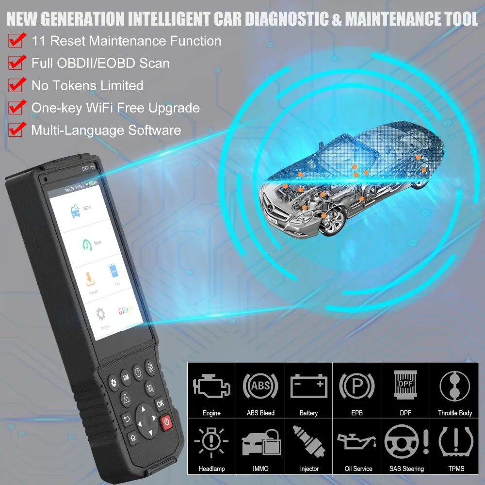 1. 5,0 "IPS сенсорный экран и кнопка двойного управления модель, система Android 7,0, Wi-Fi подключение. 2. Базовая Диагностика OBD2, как чтение и очистка DTC, живые данные, стоп-кадр, I/M готов, вин. 3. 11 специальных функций: Кодирование инжектора, сброс масла, сброс тормозных колодок, сброс TPMS, соответствие батареи, DPF, кровотечение ABS, адаптация дроссельной заслонки, сброс IMMO, SAS, сброс фар AFS. 4. Поддержка 9 языков: английский, французский, испанский, русский, японский, немецкий, итальянский, португальский, корейский. 5. Обновление: Поддержка одного года бесплатного обновления, один ключ обновления через wifi. 6. Диагностический отчет: подготовьте диагностический отчет и Распечатайте его по электронной почте. 7. Поддержка нескольких моделей автомобилей (покрывающих более 50 превалирующих моделей из Азии, Америки и Европы).