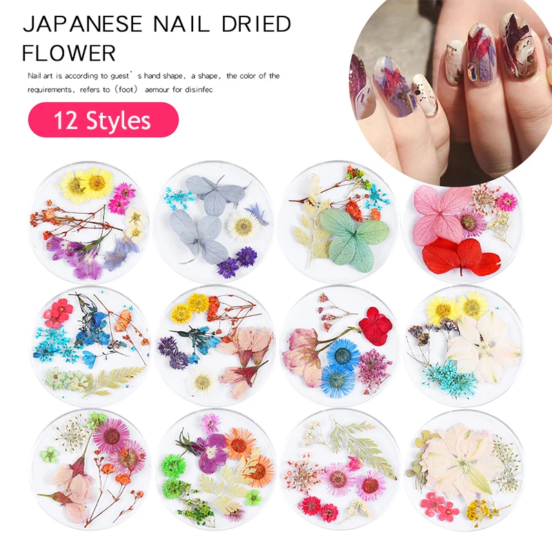 1 Box Mixed Natural Dried Flowers Nail Art 3D Designs Nail Art Decoration Polish Manicure Accessories DIY Japanese Nail Art Tip