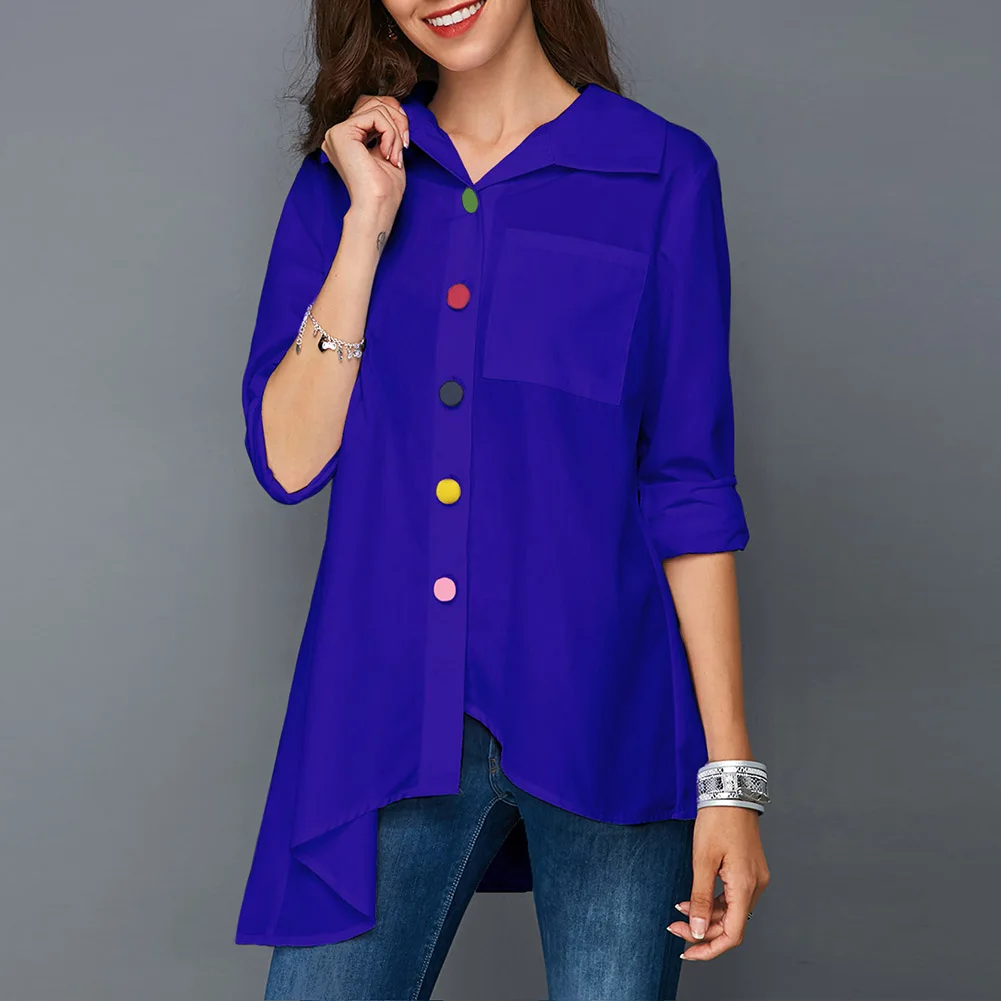 Необычная тонкая женская офисная рубашка, топы, цветная блуза с длинными рукавами и пуговицами
