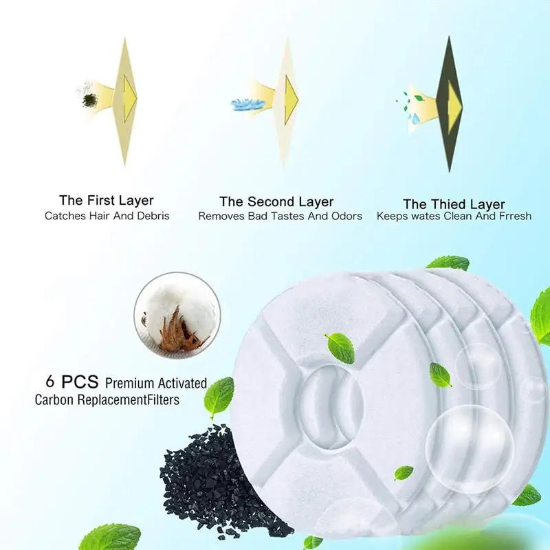 Фильтр для фонтана воды фильтрует волосы и остатки, удаляет запахи и смягчает воду, которая легко разбирается и очищается.