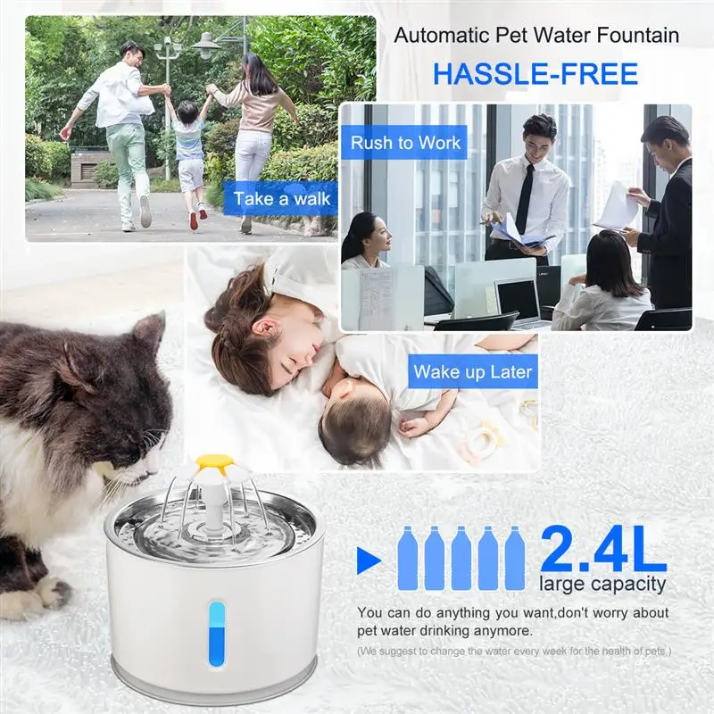 Не нужно часто пополнять воду, и она может удовлетворить питьевые потребности кошек, собак, птиц и других домашних животных различных размеров. Не нужно беспокоиться о том, что ваши питомцы не получают достаточно свежего напитка, когда вы идете на работу.