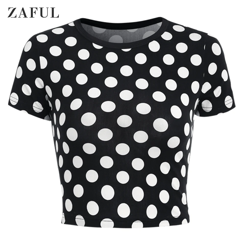 ZAFUL футболка в горошек женская летняя с коротким рукавом облегающие высокие футболки стрит-стайл эластичная укороченная Спортивная футболка футболки для бега