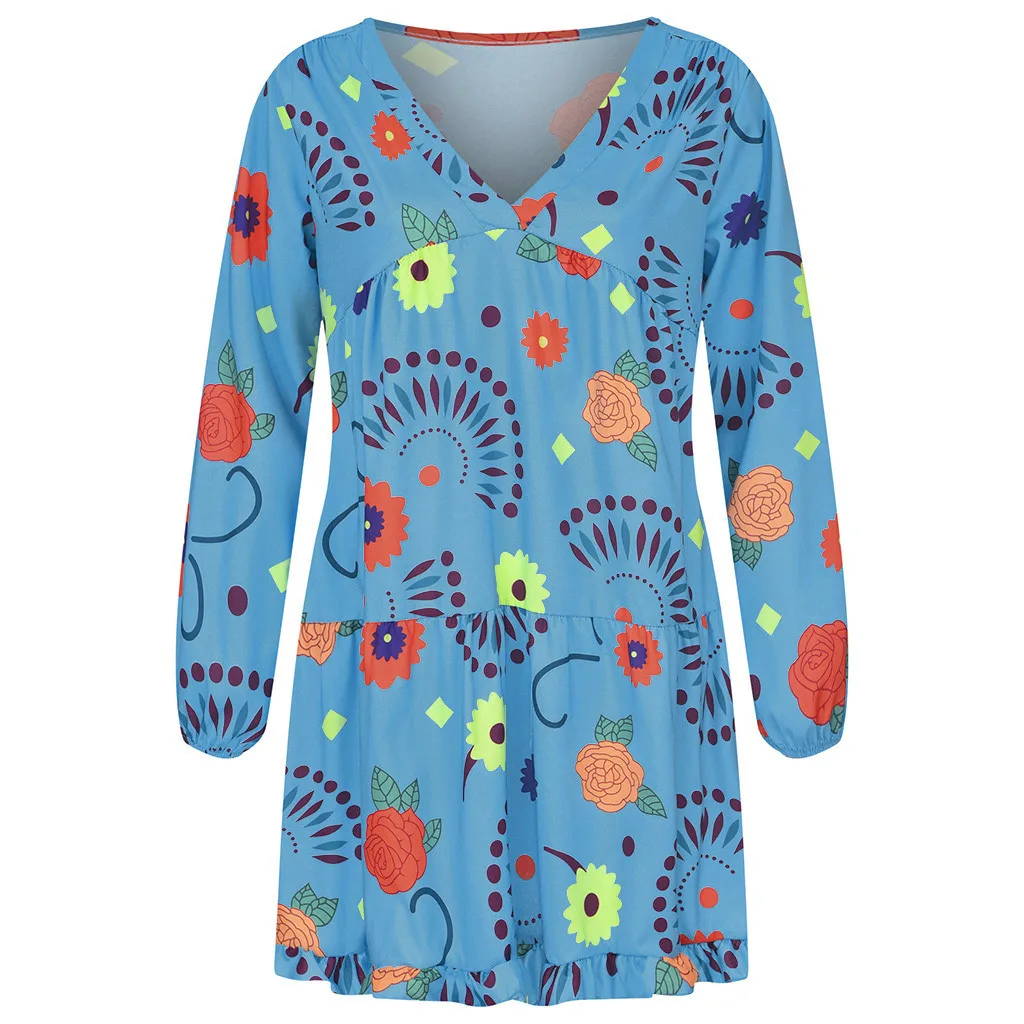 Женское Повседневное платье неправильной формы с цветочным принтом и длинным рукавом большого размера