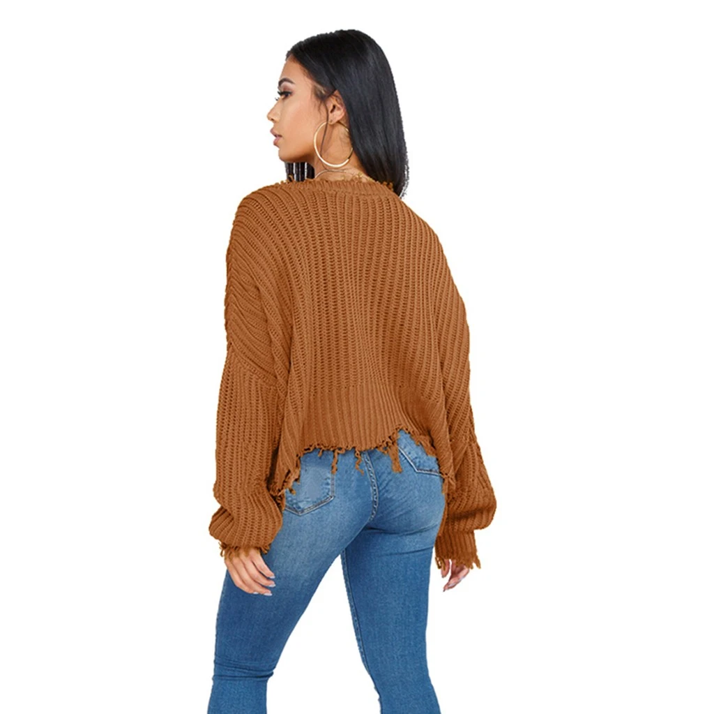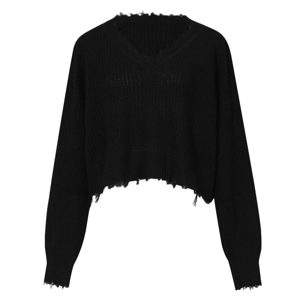 Женский вязаный свитер с длинным рукавом JAYCOSIN, вязаный пуловер с v-образным вырезом, зима 731